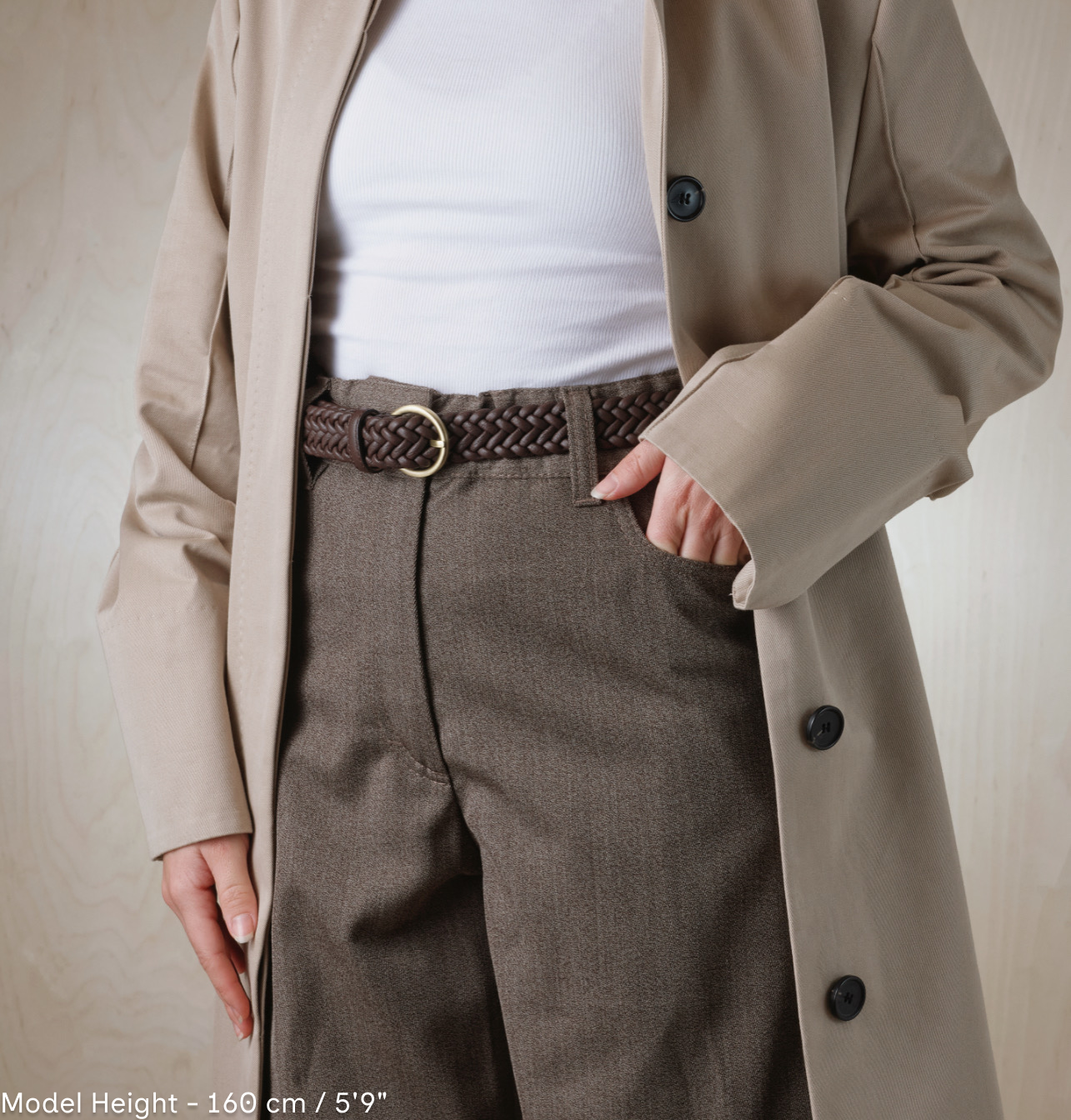 Braided belt בעלת מראה טבעי ואלגנטי שמוסיף עומק לכל הופעה. הקליעה מעניקה לה טקסטורה עשירה ונוכחות ייחודית, והאבזם המתכתי משלים את המראה באיזון מושלם בין קלאסיות לפשטות מודרנית.