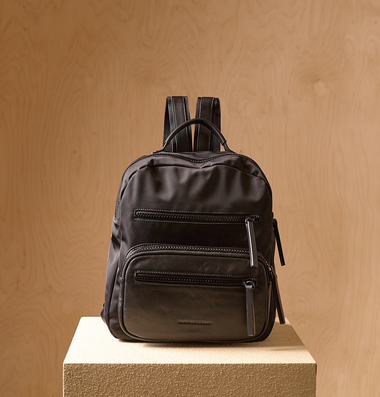 Porto Backpack תיק גב בגודל בינוני בעיצוב נקי ומתוחכם, שהופך אותו לפריט חובה לכל מי שאוהבת לטייל ולהסתובב. התיק עשוי משילוב ייחודי של ניילון ועור הניתנים לניקוי, עם חלוקה נוחה הכוללת כיסים חיצוניים ופנימיים. בנוסף, הוא כולל רצועה נוחה שמתלבשת על מזוודה – מה שהופך אותו לתיק המושלם לנסיעות.