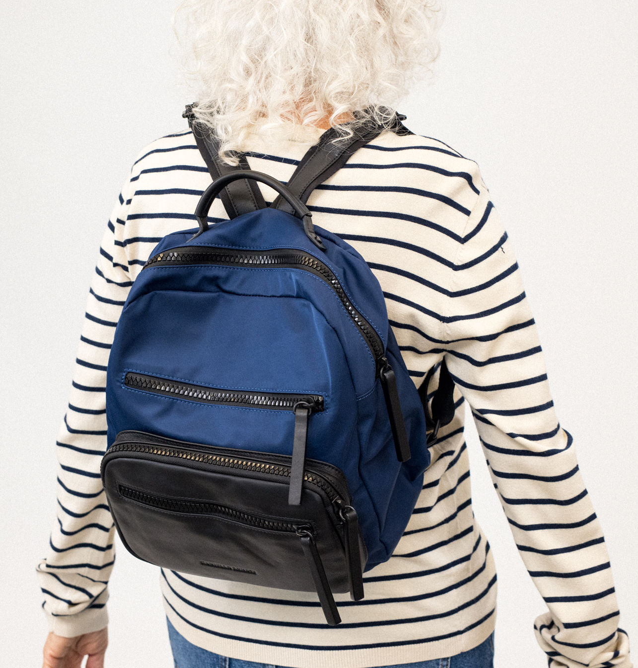 Porto Backpack תיק גב בגודל בינוני בעיצוב נקי ומתוחכם, שהופך אותו לפריט חובה לכל מי שאוהבת לטייל ולהסתובב. התיק עשוי משילוב ייחודי של ניילון ועור הניתנים לניקוי, עם חלוקה נוחה הכוללת כיסים חיצוניים ופנימיים. בנוסף, הוא כולל רצועה נוחה שמתלבשת על מזוודה – מה שהופך אותו לתיק המושלם לנסיעות.