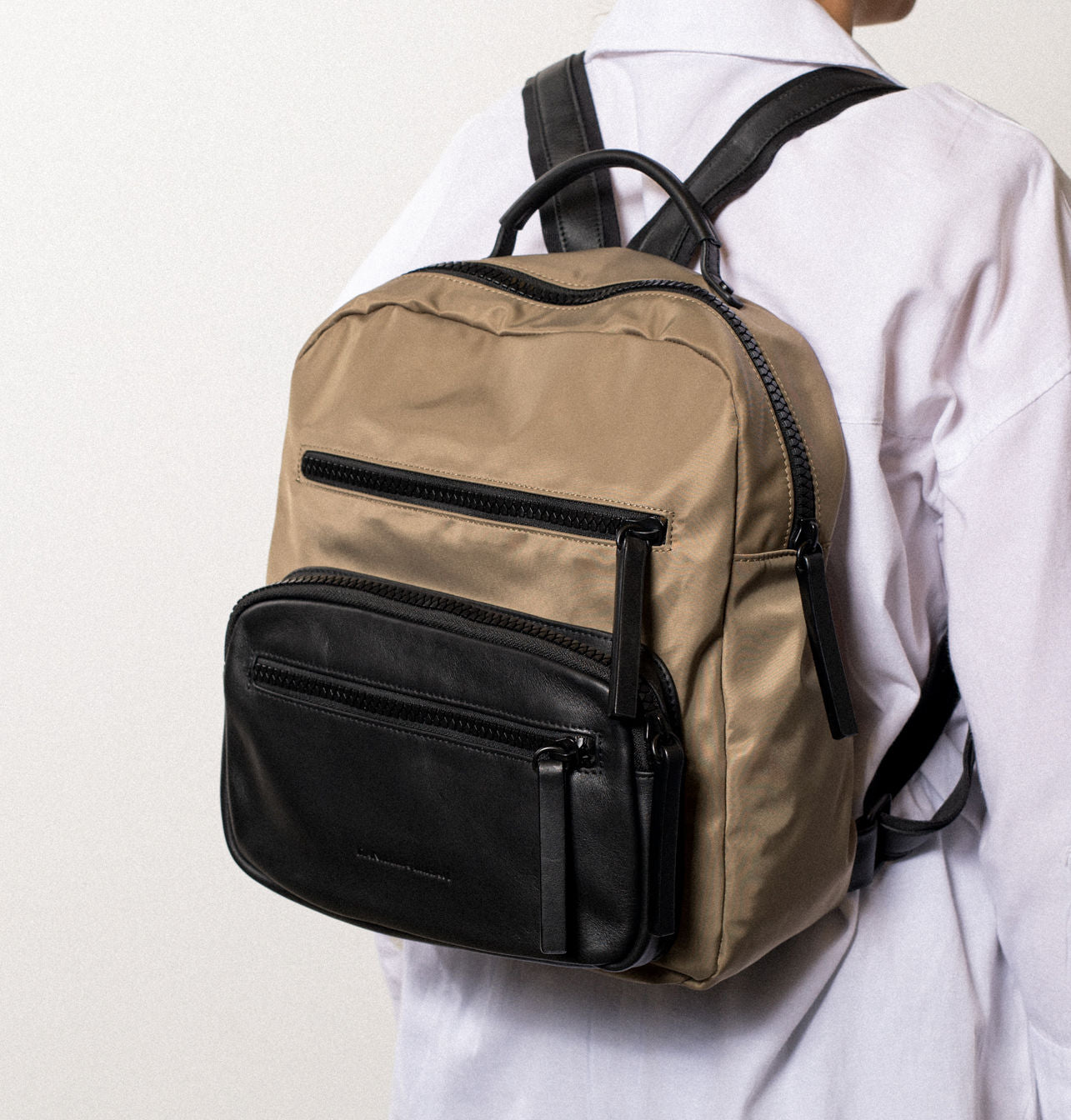 Porto Backpack תיק גב בגודל בינוני בעיצוב נקי ומתוחכם, שהופך אותו לפריט חובה לכל מי שאוהבת לטייל ולהסתובב. התיק עשוי משילוב ייחודי של ניילון ועור הניתנים לניקוי, עם חלוקה נוחה הכוללת כיסים חיצוניים ופנימיים. בנוסף, הוא כולל רצועה נוחה שמתלבשת על מזוודה – מה שהופך אותו לתיק המושלם לנסיעות.