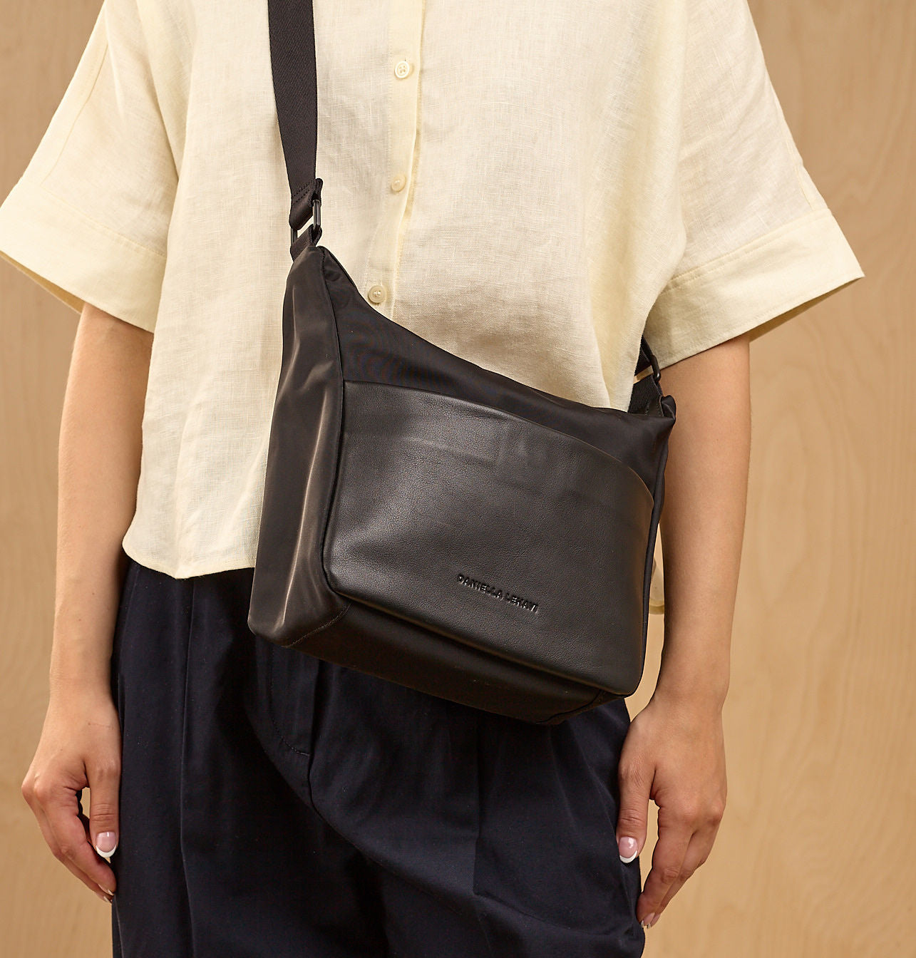 Porto Small Crossbody Bag הוא תיק צד בגודל קטן שמשלב בהרמוניה בין סטייל ופונקציונליות מה שהופך אותו לפריט חובה לנסיעות. התיק עשוי עור איכותי בשילוב בד ניילון עמיד משתלב עם כל סגנון ויוצר מראה נקי.