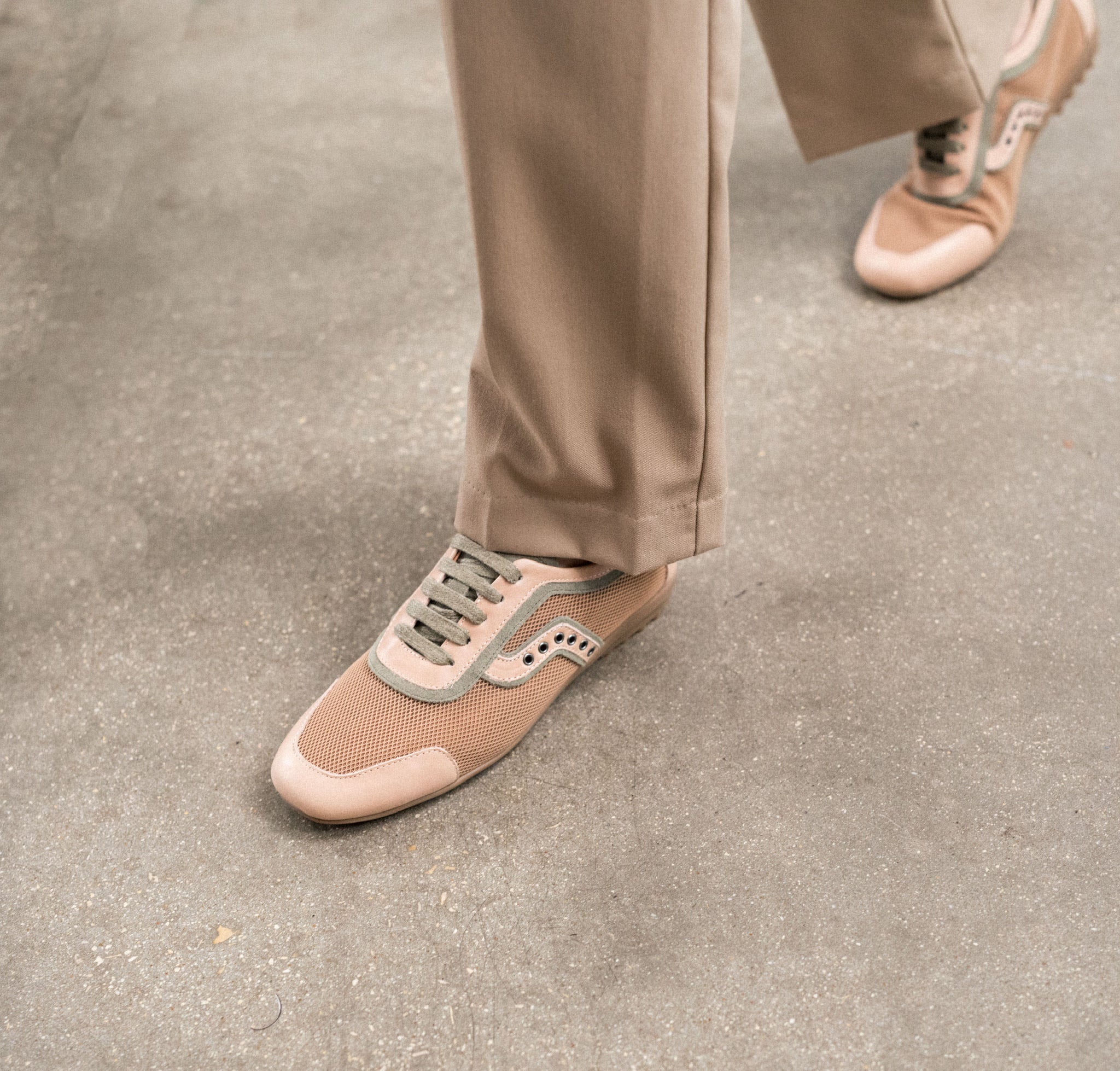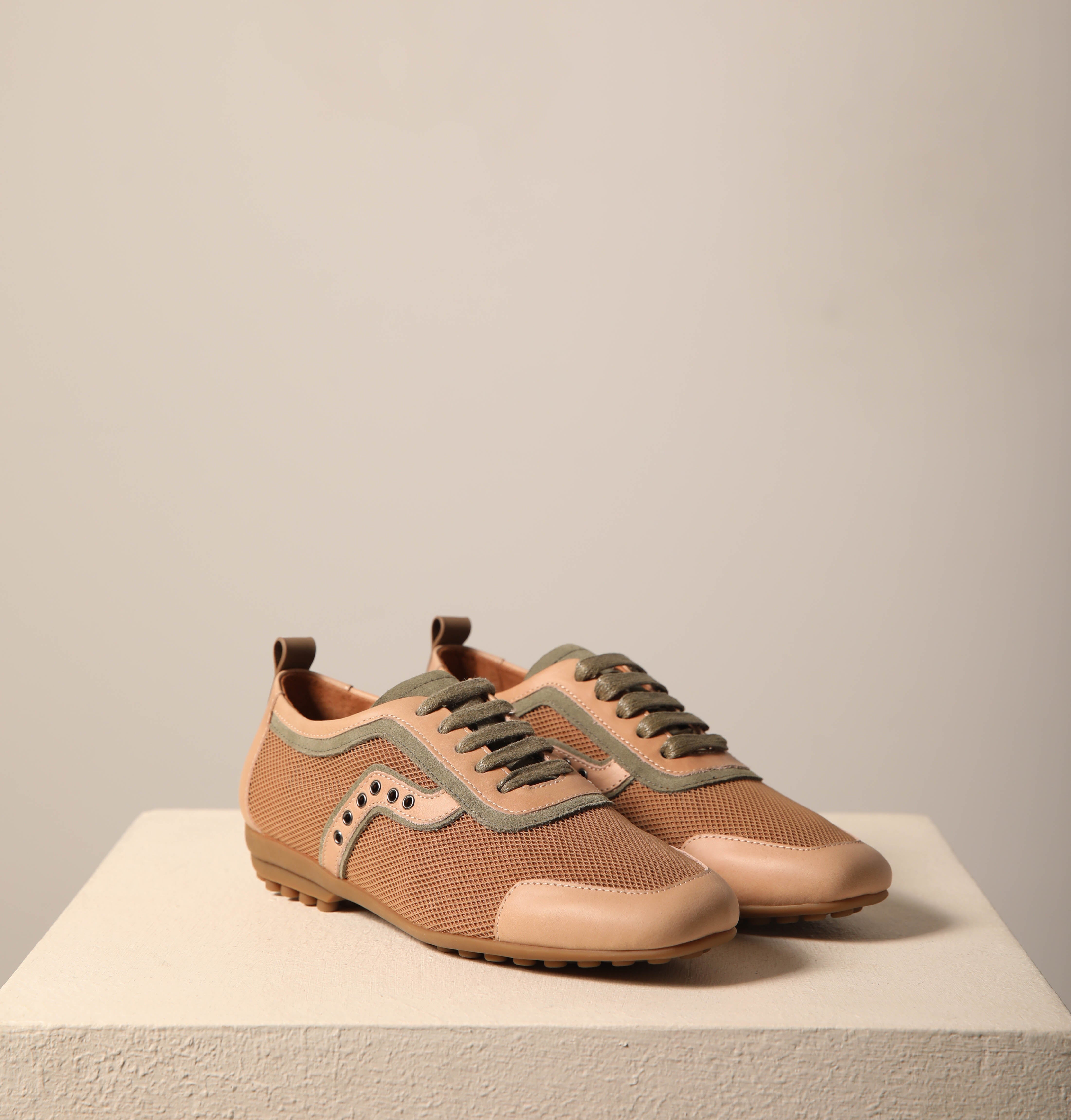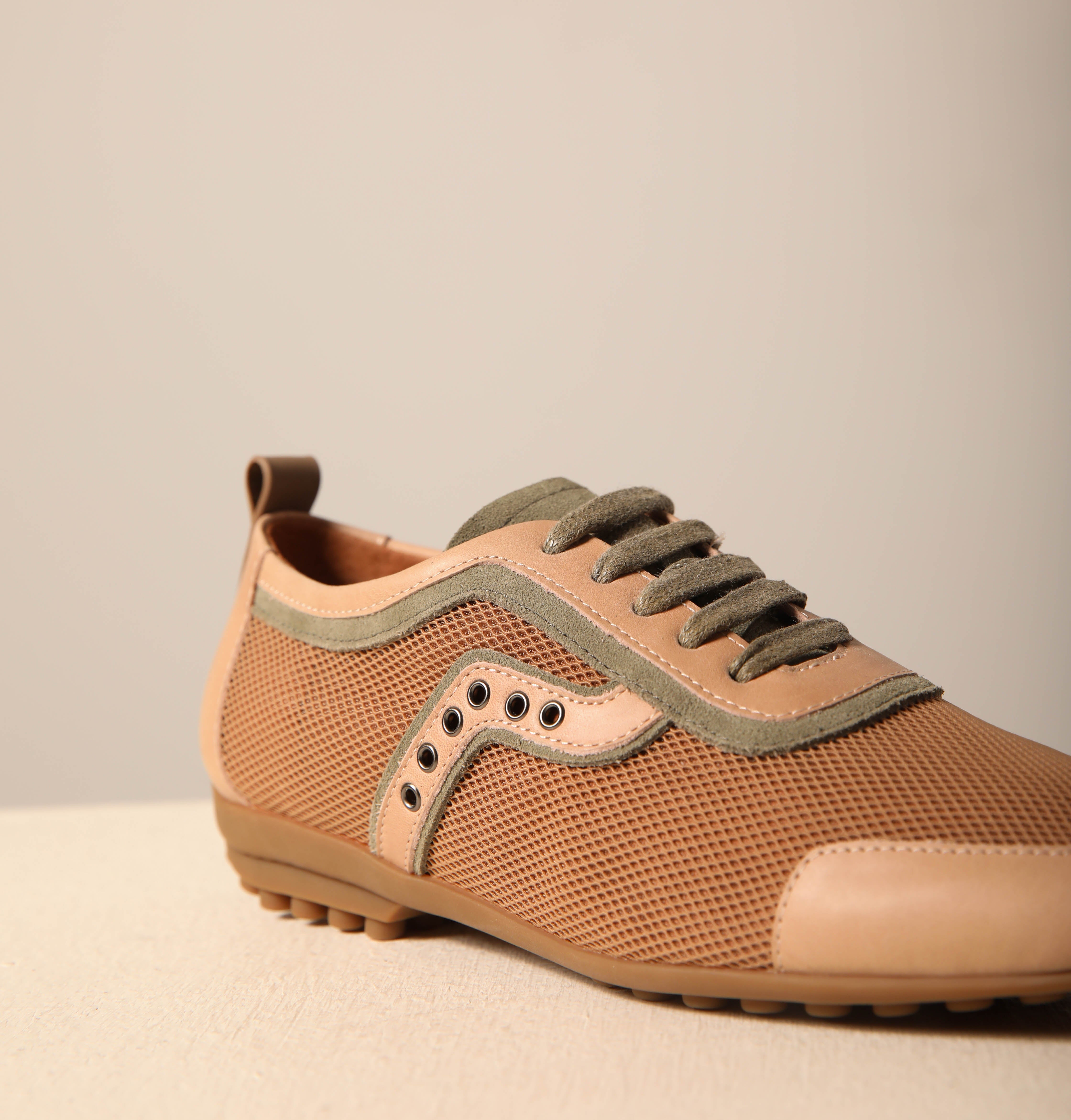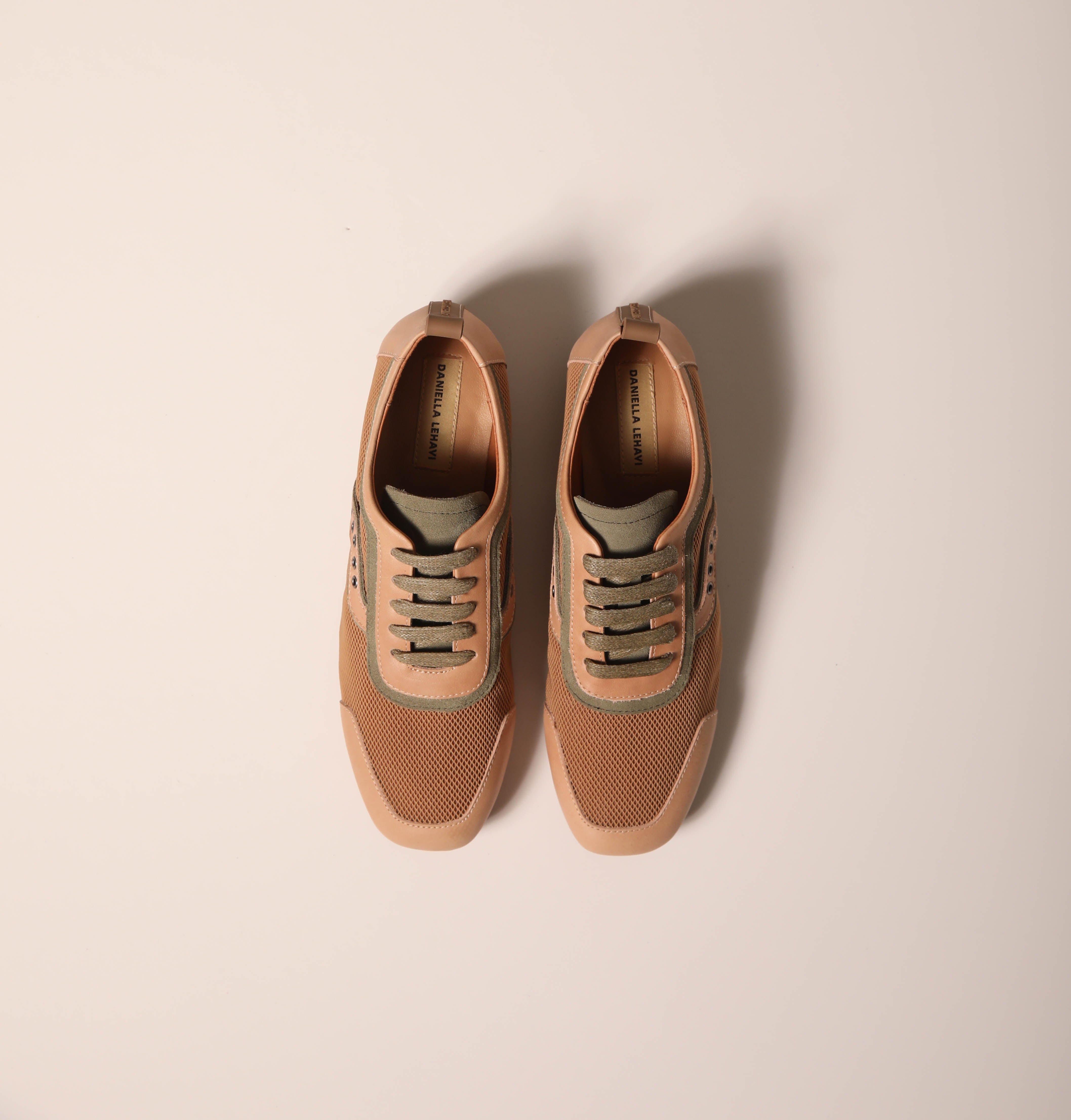 נעלי סניקרס בגזרה נמוכה משולבות בעור איטלקי איכותי ורשת המאפשרות תחושת אווריריות וקלילות בזמן ההליכה.