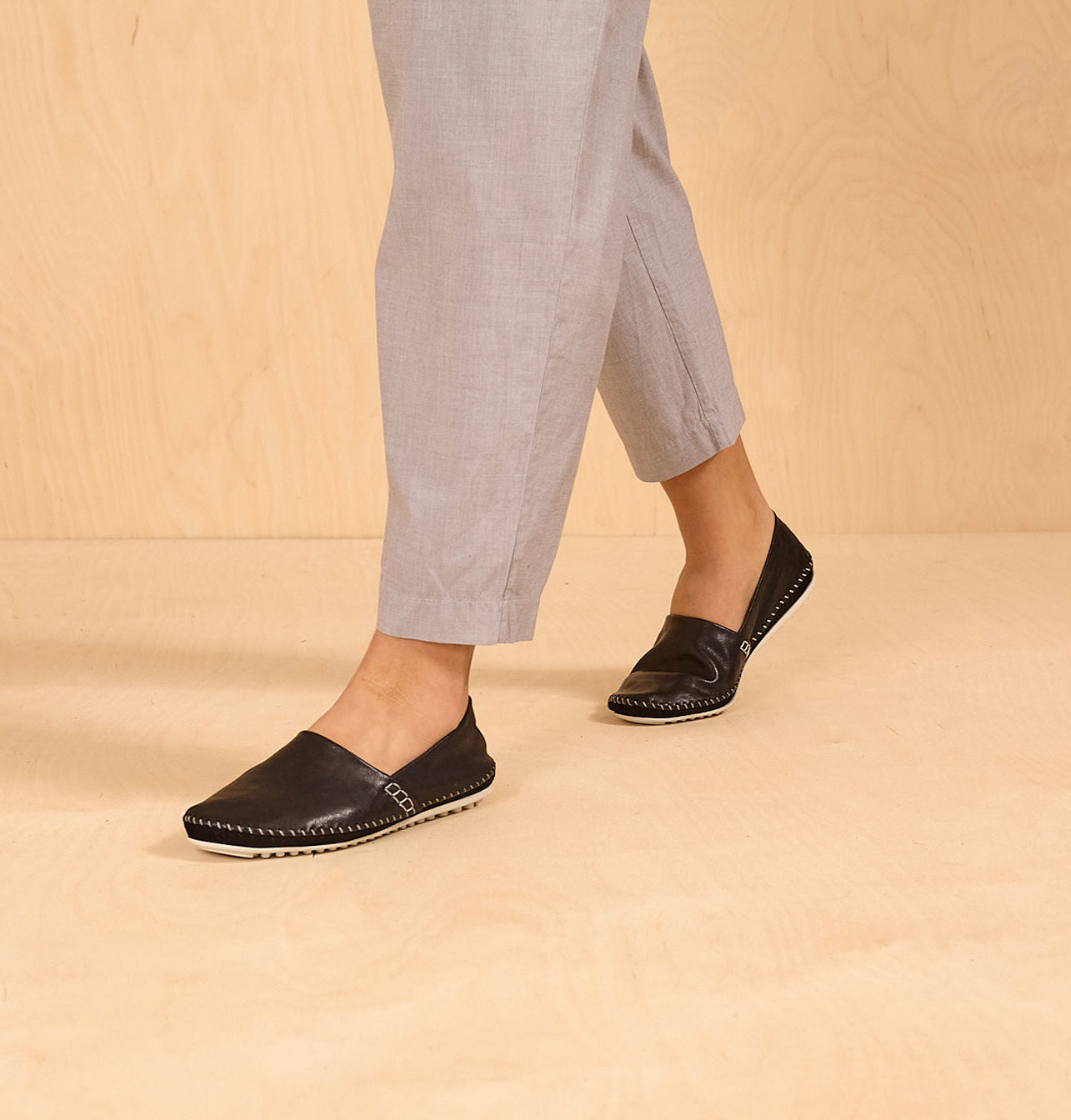 הVega Soft הן נעלי סליפ-און רכות במיוחד מעור נאפה עם תיפורים בולטים למראה ייחודי. חרטום עגול ורפידת עור מספקים נוחות מירבית, בעוד שסוליית גומי שטוחה  יציבות וגמישות. מתאימות במיוחד לרגל רחבה ולנוחות לכל היום.