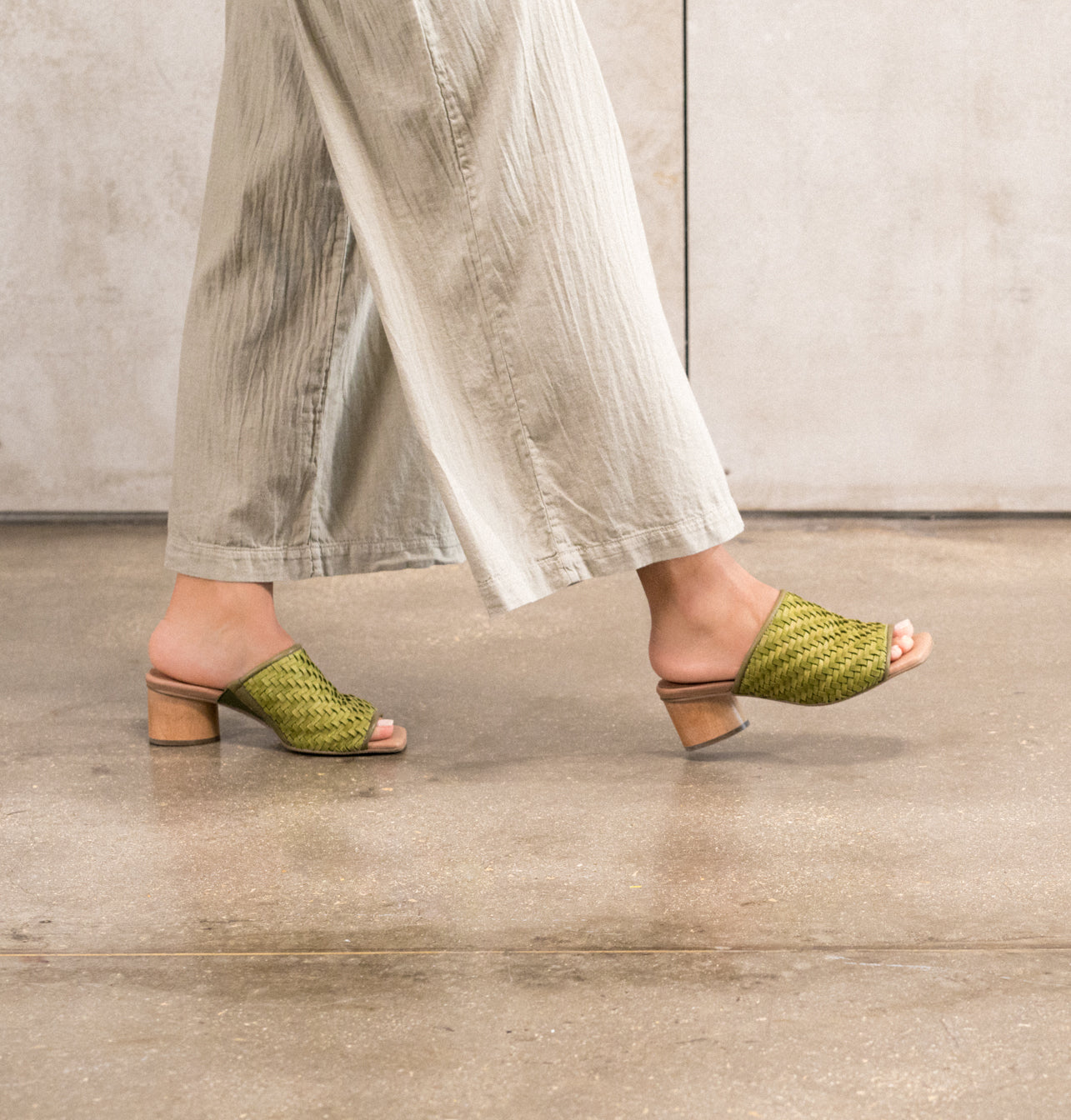 ה-Capri Mules מספקות נוחות וסגנון ייחודי לימי הקיץ. החלק העליון קלוע בעבודת יד ועשוי עור רך, מתאימות לסגנונות רבים ונשארות נוחות במשך כל היום.