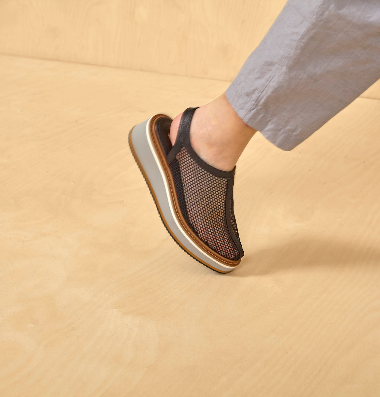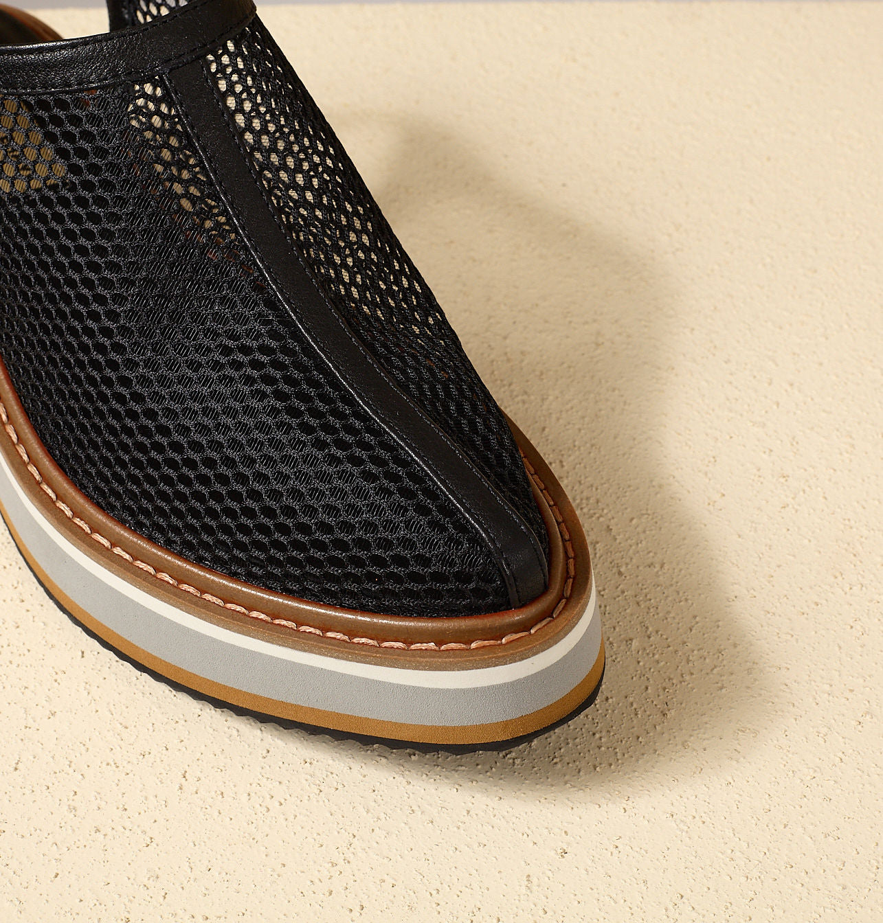 Malaga Mesh Slingback היא נעל אלגנטית במראה מודרני, המשלבת עור נאפה ובד רשת לאיזון מושלם בין סגנון לאוורור. חרטום מחודד מעניק מראה מחוטב ואלגנטי, בעוד רפידת העור מספקת נוחות מרבית. סוליית פלטפורמה קלה וגמישה  יוצרת תוספת גובה טבעית לצד יציבות ונוחות. נעילה נוחה באמצעות רצועה אחורית אלסטית להשלמת חוויית השימוש.