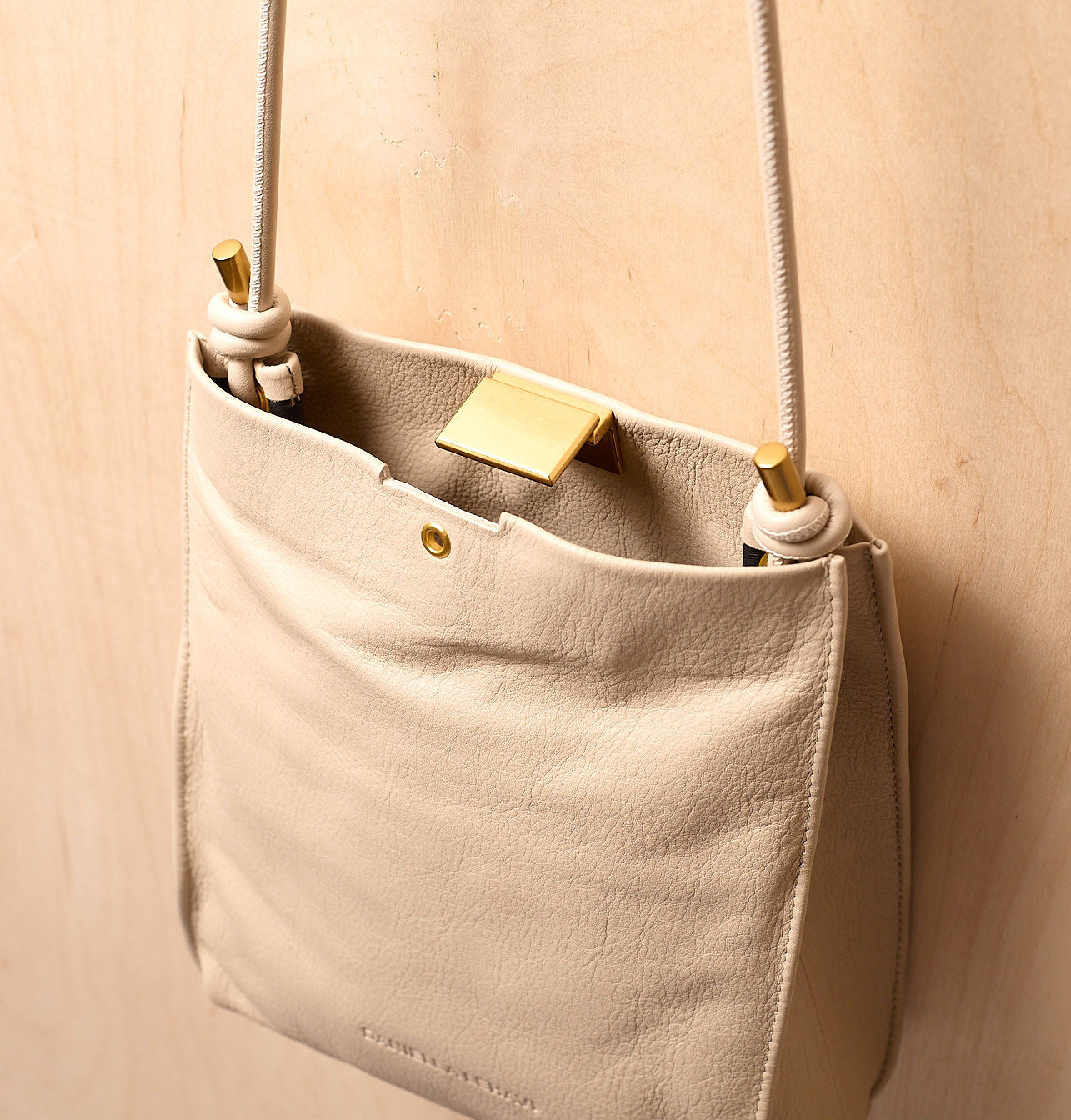 הCapri Crossbody הוא תיק מלבני ומאורך בעיצוב נקי, עם סגירת מנעול מתכת ייחודי. לתיק רצועת עור דקה אך עמידה עם קשירה, שהופכת אותו לתיק שיכול להתאים גם ליום וגם לערב.