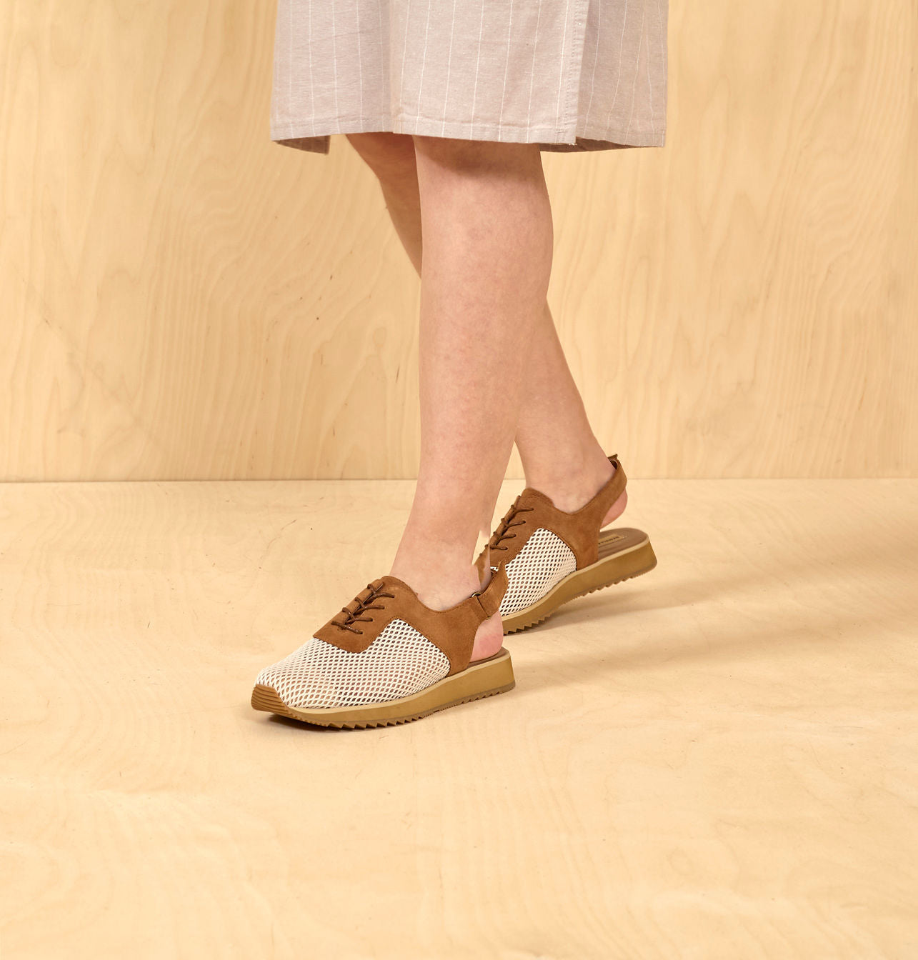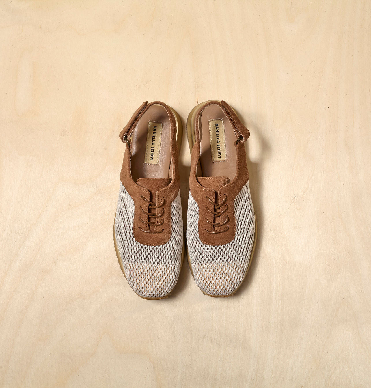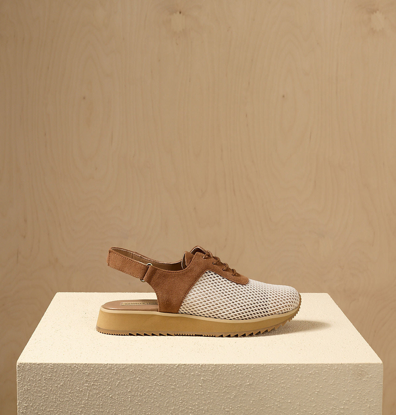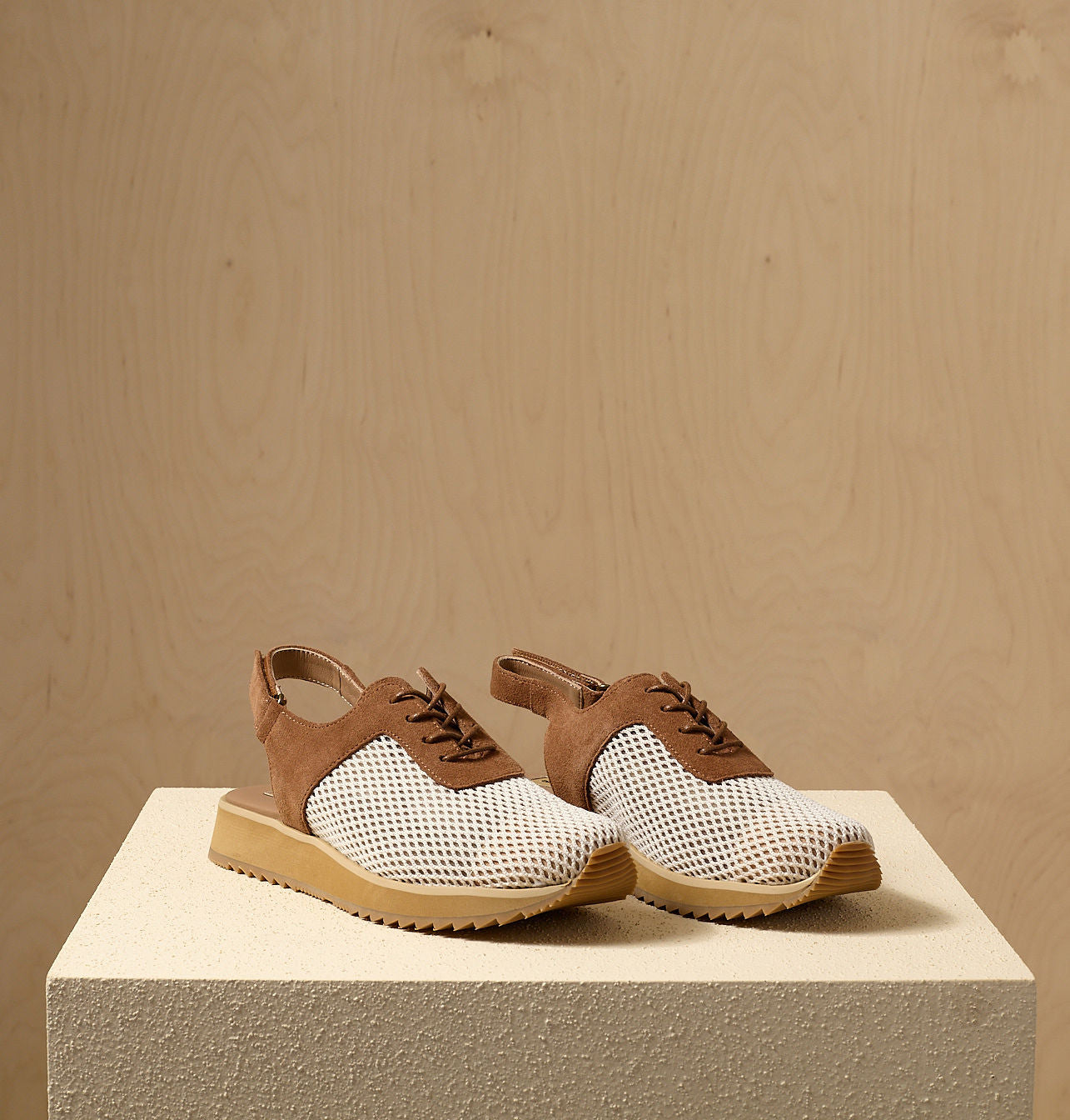 Rio Mesh Slingback היא נעל אופנתית בעיצוב מודרני המשלבת זמש ובד רשת לנוחות ואוורור מיטבי. חרטום עגול ורפידת עור מספקים התאמה נוחה לאורך כל היום. סוליית פלטפורמה קלה וגמישה המעניקה תמיכה ויציבות. סגירת שרוכים ורצועת וולקרו אחורית מאפשרות התאמה מושלמת למבנה הרגל.