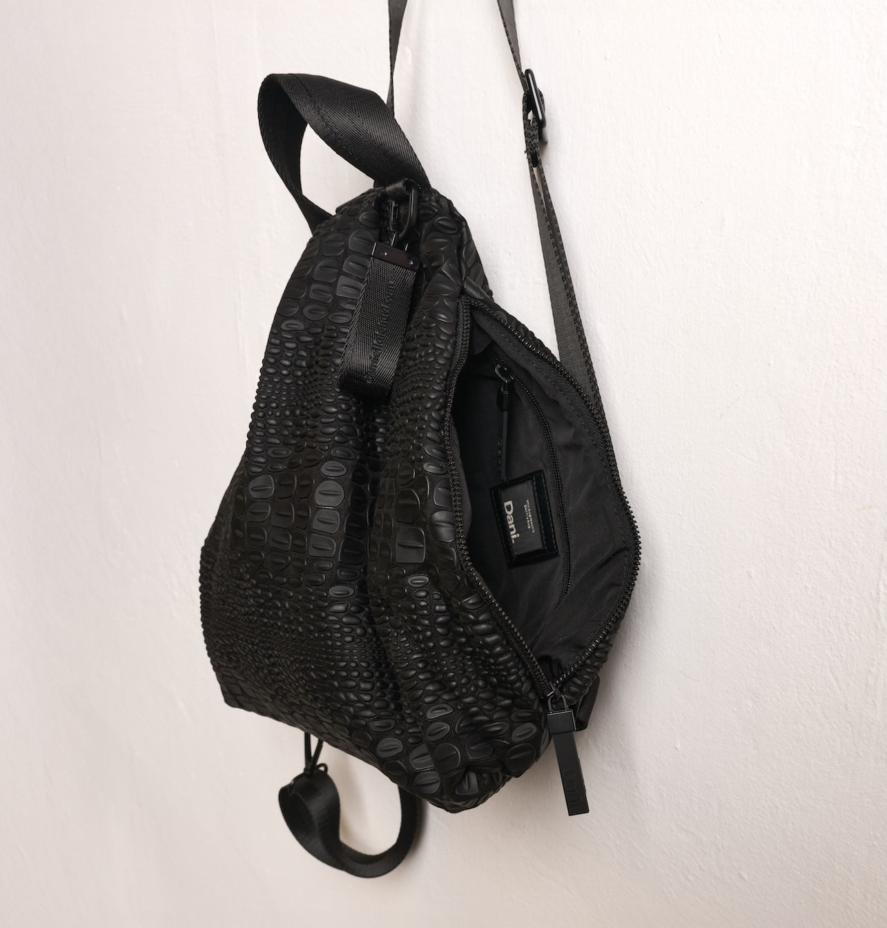Tokyo backpack תיק גב במבנה רך עם מרקם קרוקו ייחודי שפותח אצלנו בסטודיו.