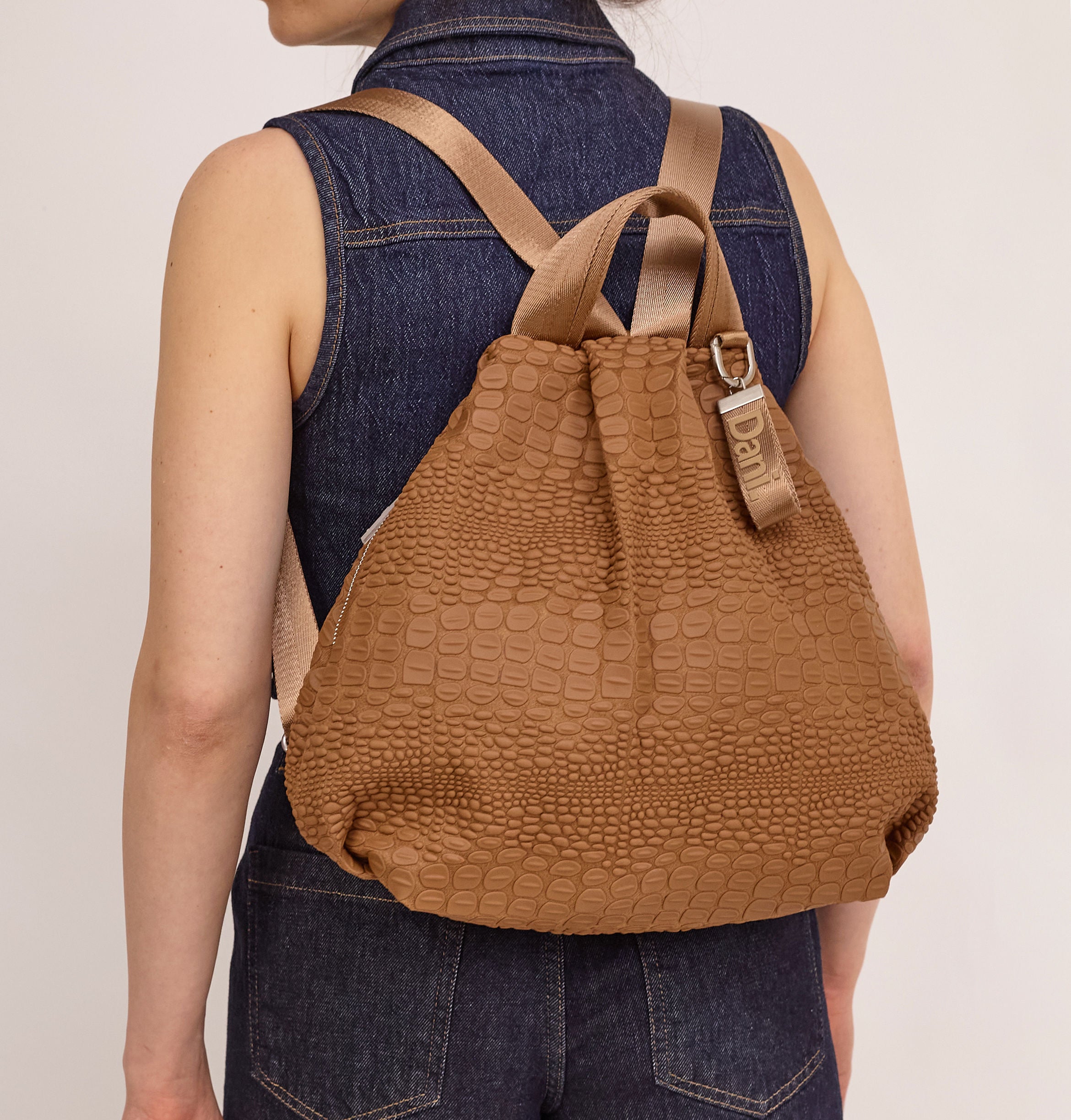 תיק הגב מקולקציית Tokyo backpack הוא שילוב בין אמירה אופנתית לפרקטיות. לתיק הגב תמיד היה מקום בקולקציות של דניאלה להבי וכך גם בקולקציה הטבעונית.