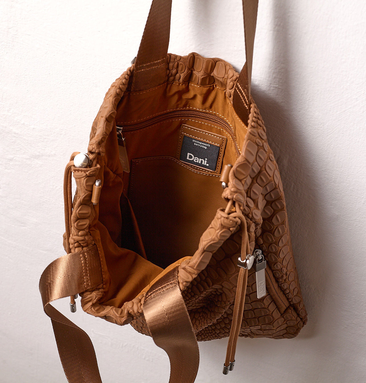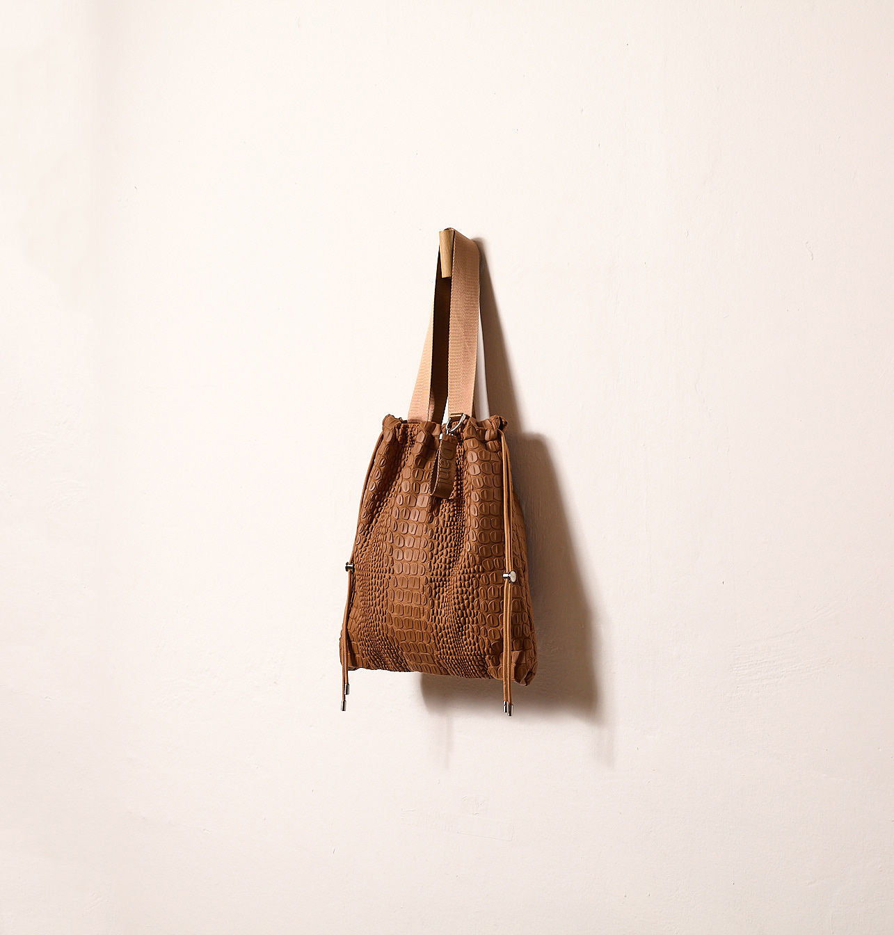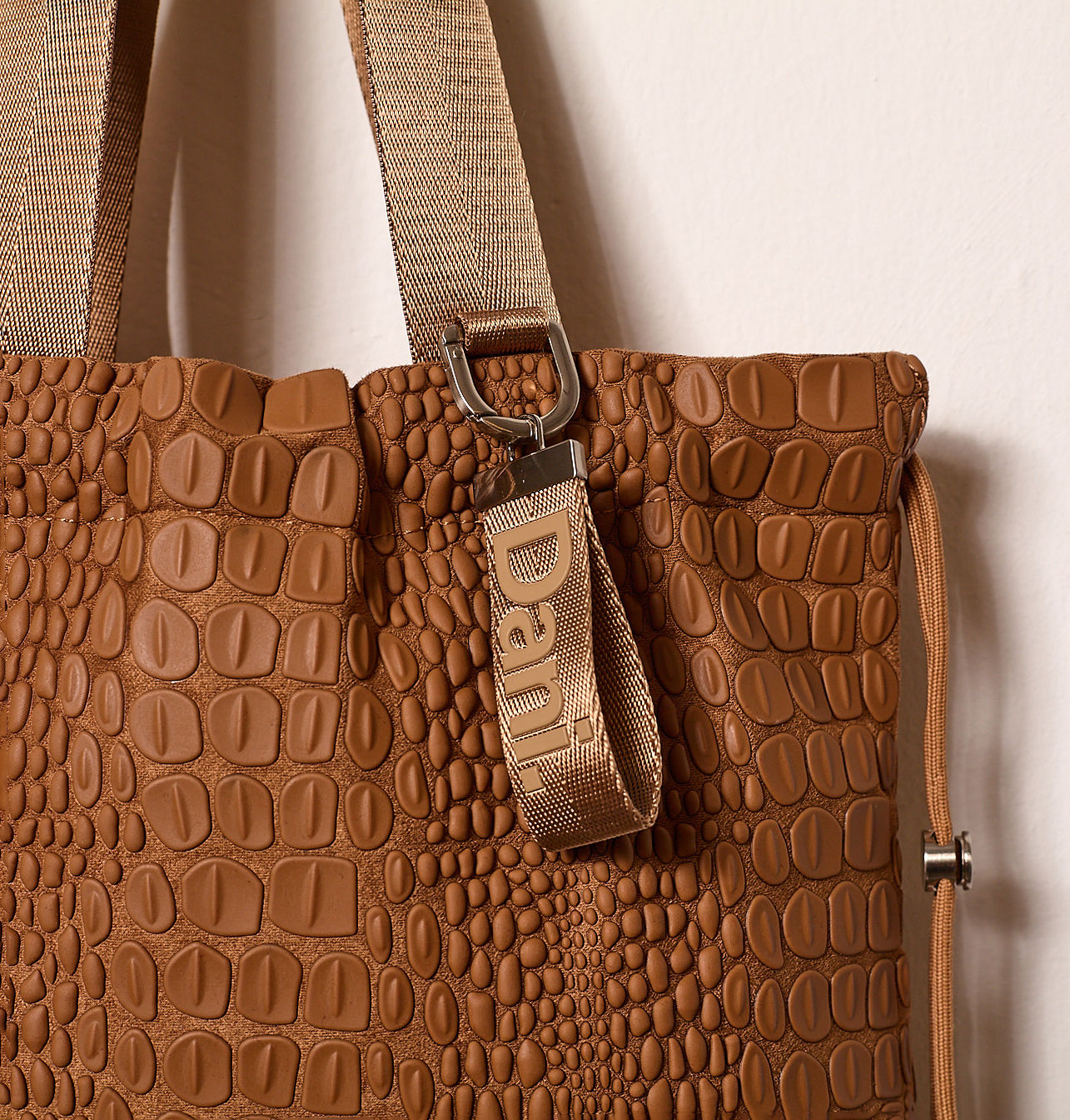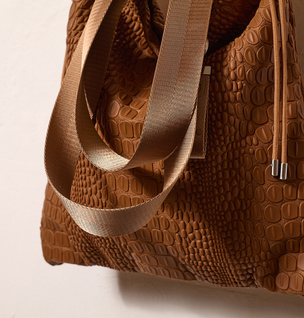 Tokyo Tote Bag הוא תיק שק גדול ומרווח, המעוצב עם שילוב בד טבעוני בטקסטורת קרוק גומי, טכניקה ייחודית שפותחה בסטודיו שלנו. מבנה פונקציונלי וחלוקה חכמה הכוללת תא מרכזי גדול ושני כיסי צד – אחד פתוח והשני עם רוכסן, מאפשרים אחסון מאורגן ונגיש לכל החפצים החשובים לאורך היום.