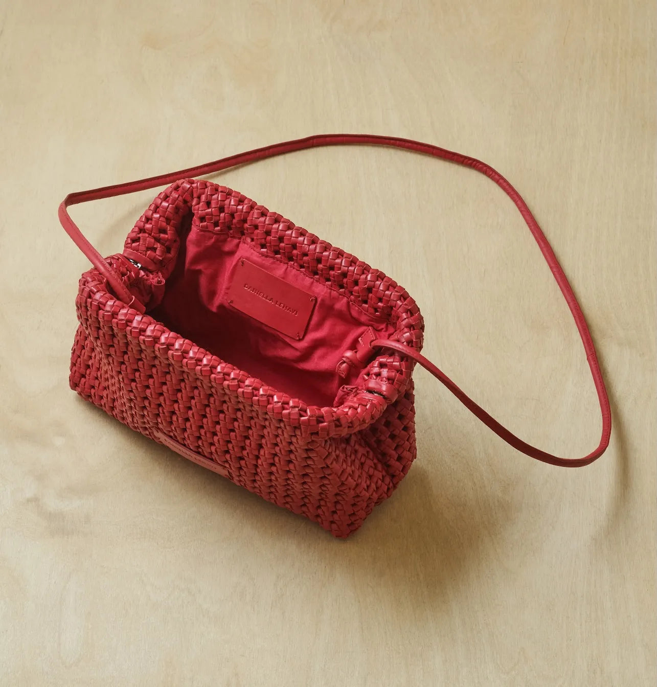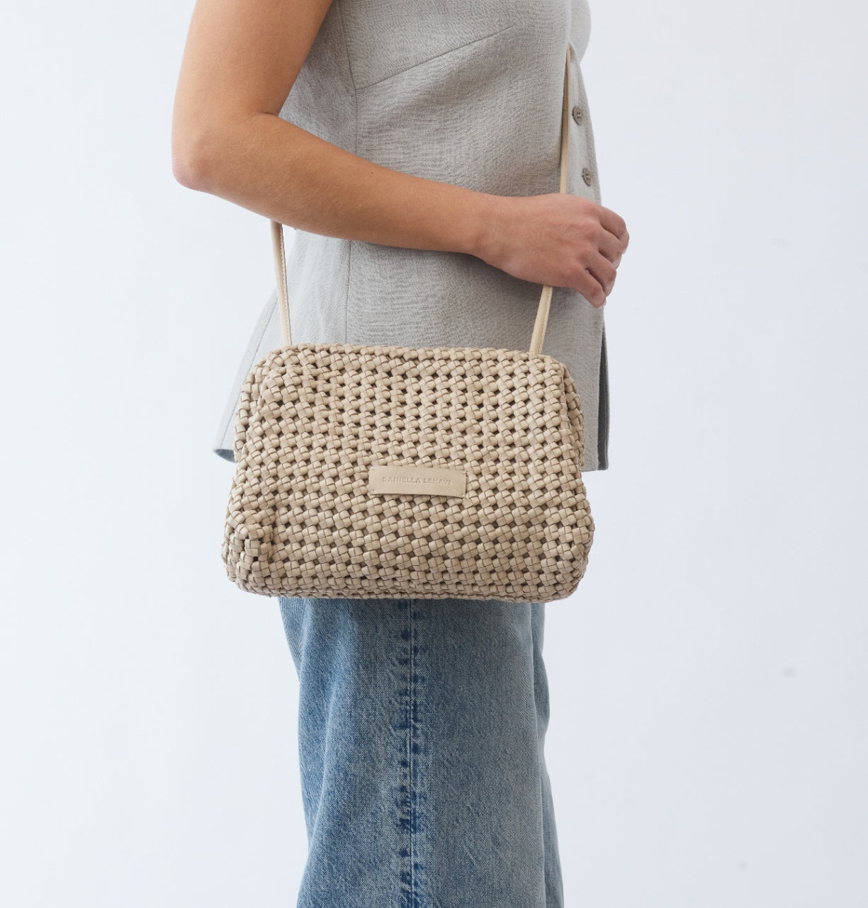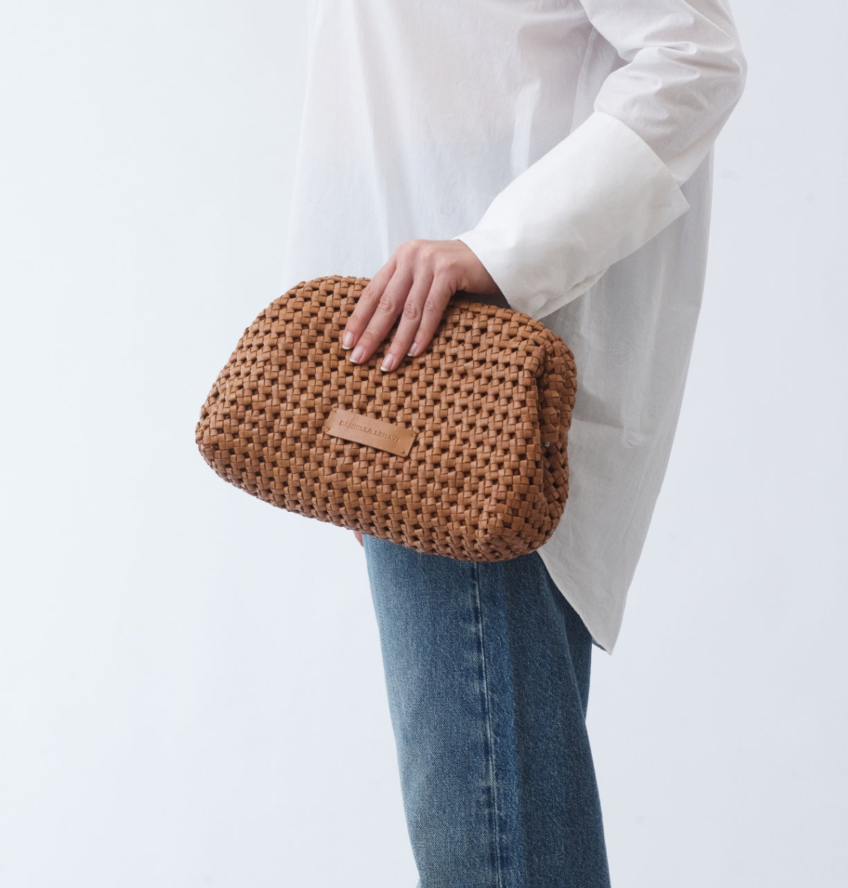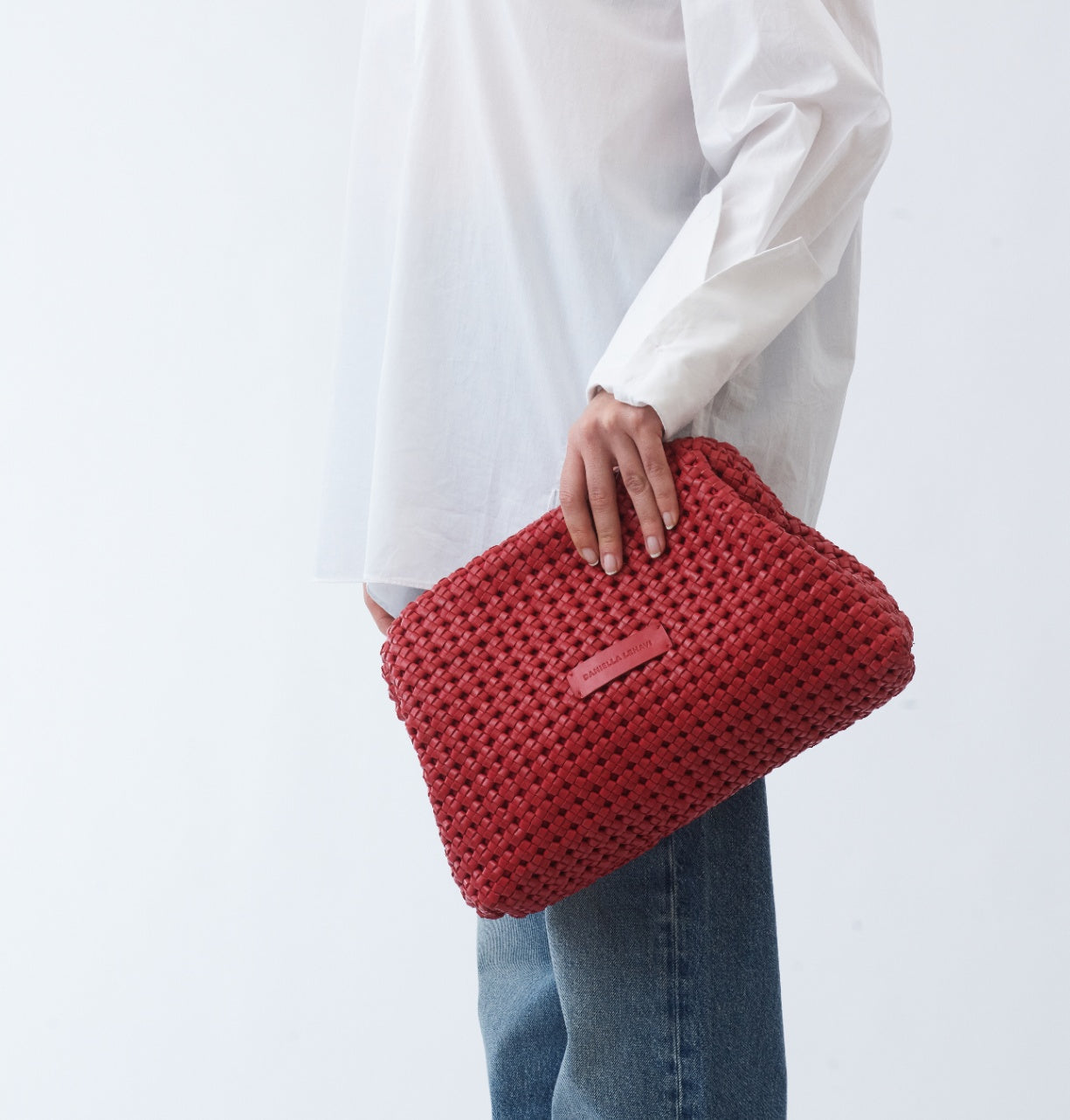 תיקי הקלאץ’ מסוג ויויאן של דניאלה להבי עשויים מעור קלוע בעבודת יד, כל אחד נשזר בקפידה ליצירת טקסטורה עשירה ונוכחות ייחודית.