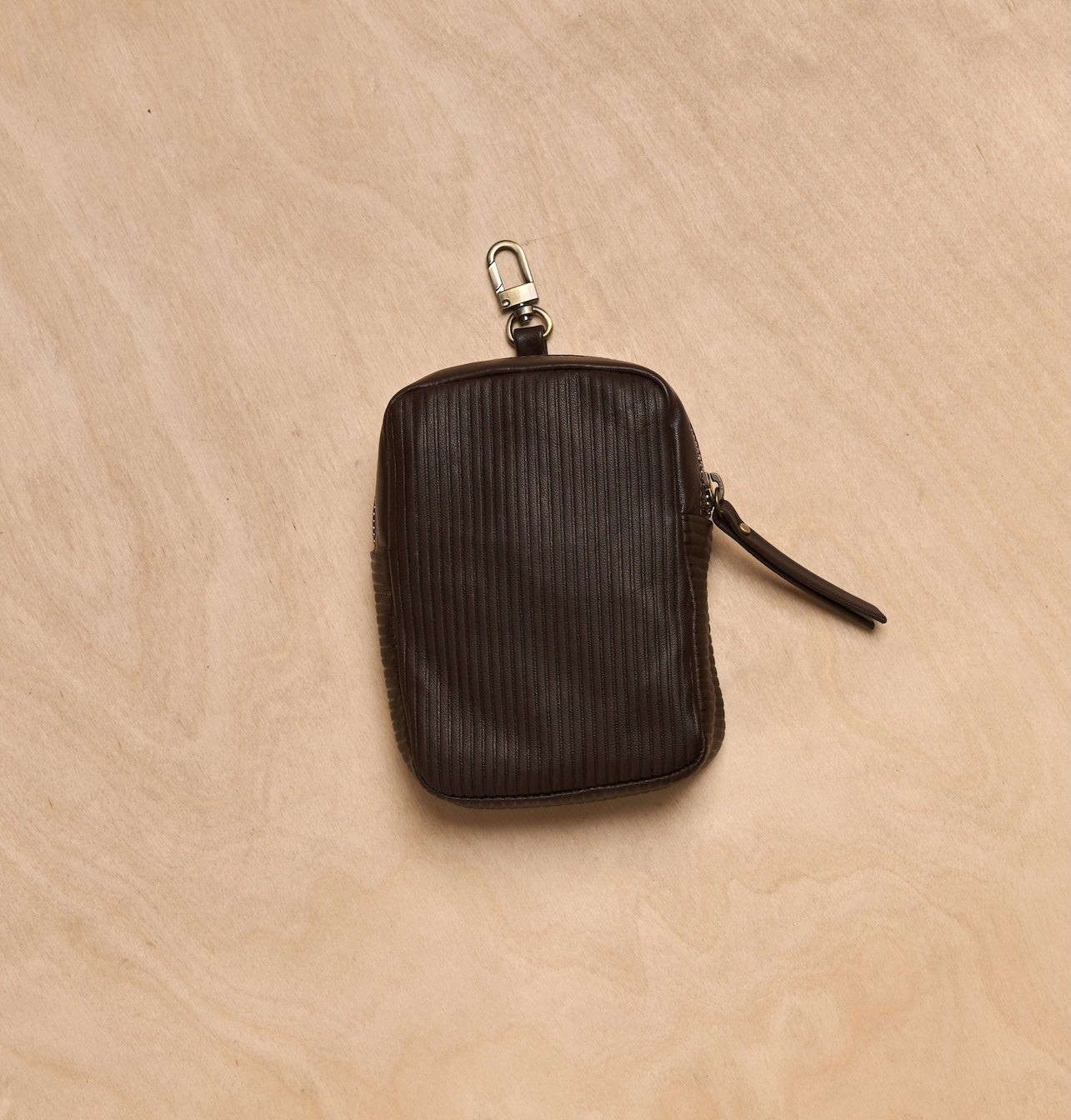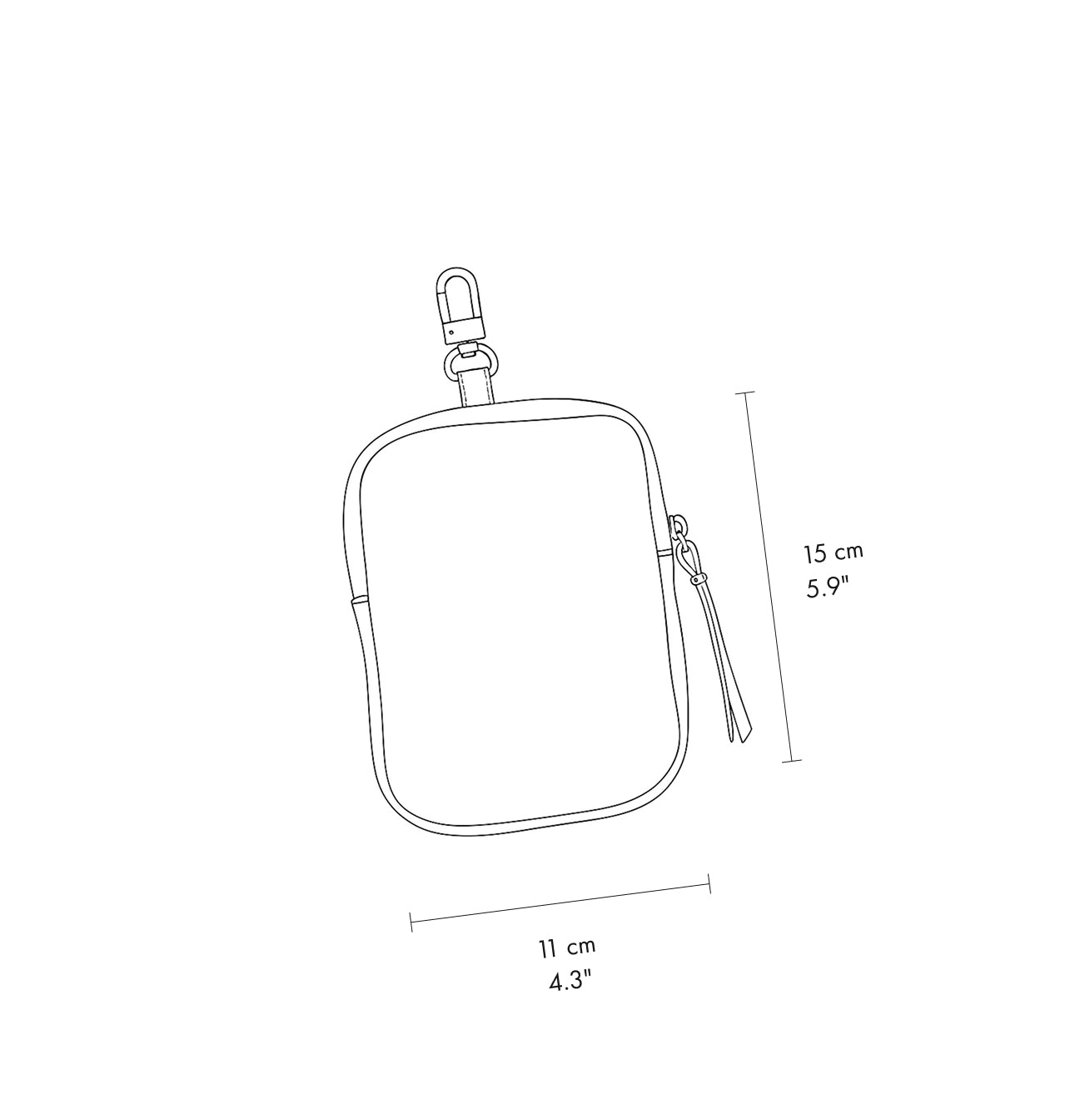 Memphis Phone Case is a compact, structured accessory with a clean and functional design, made to keep your phone and small essentials close at hand. Its soft shape and top clip allow it to be easily attached to a larger bag for added versatility.