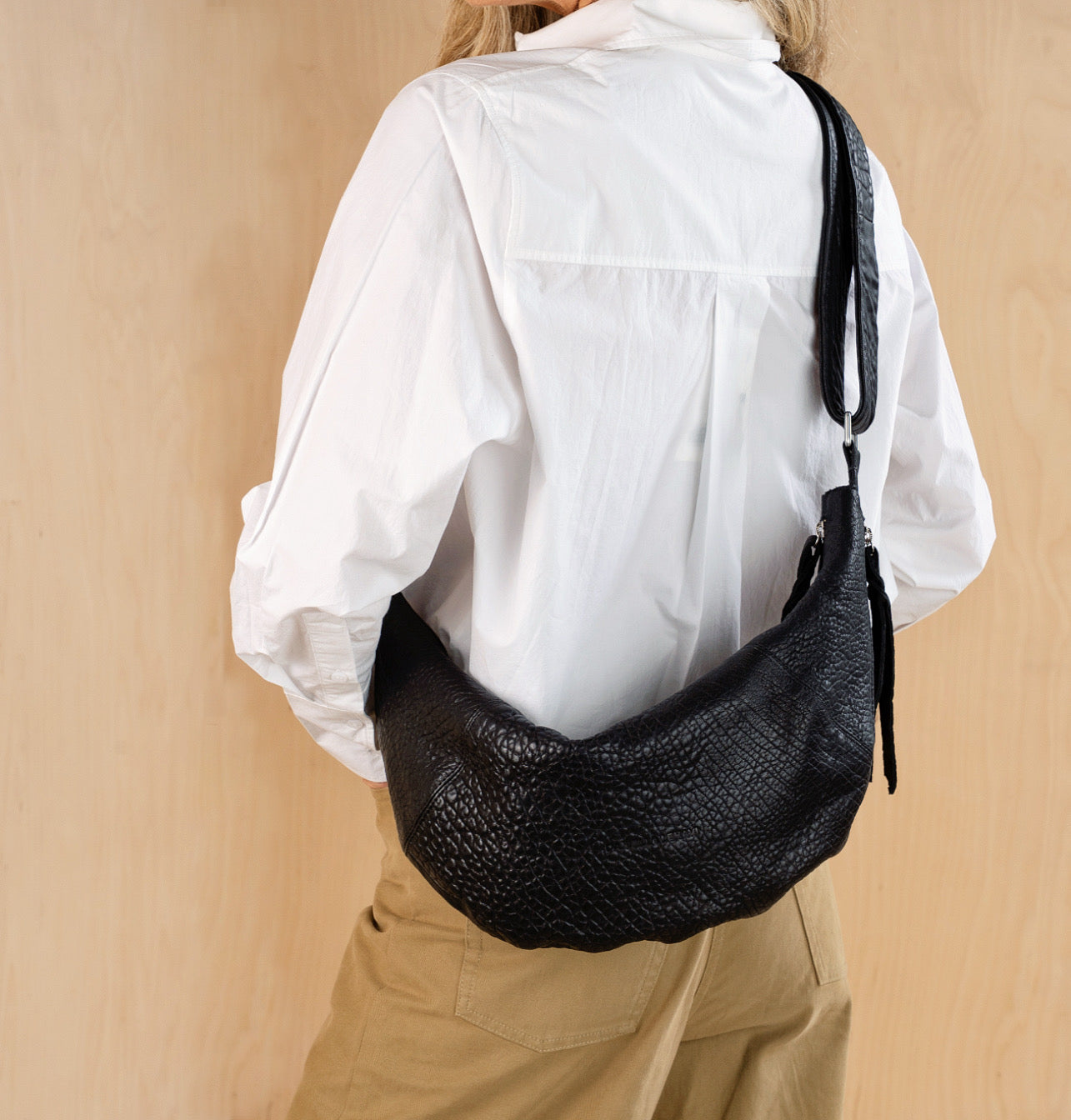The Seattle Half Moon Large is a returning favorite from the Daniella Lehavi archives – updated with a clean silhouette that preserves the classic, elegant lines of the original design. This crescent-shaped crossbody bag rests naturally against the body, offering a refined balance of style and everyday function.