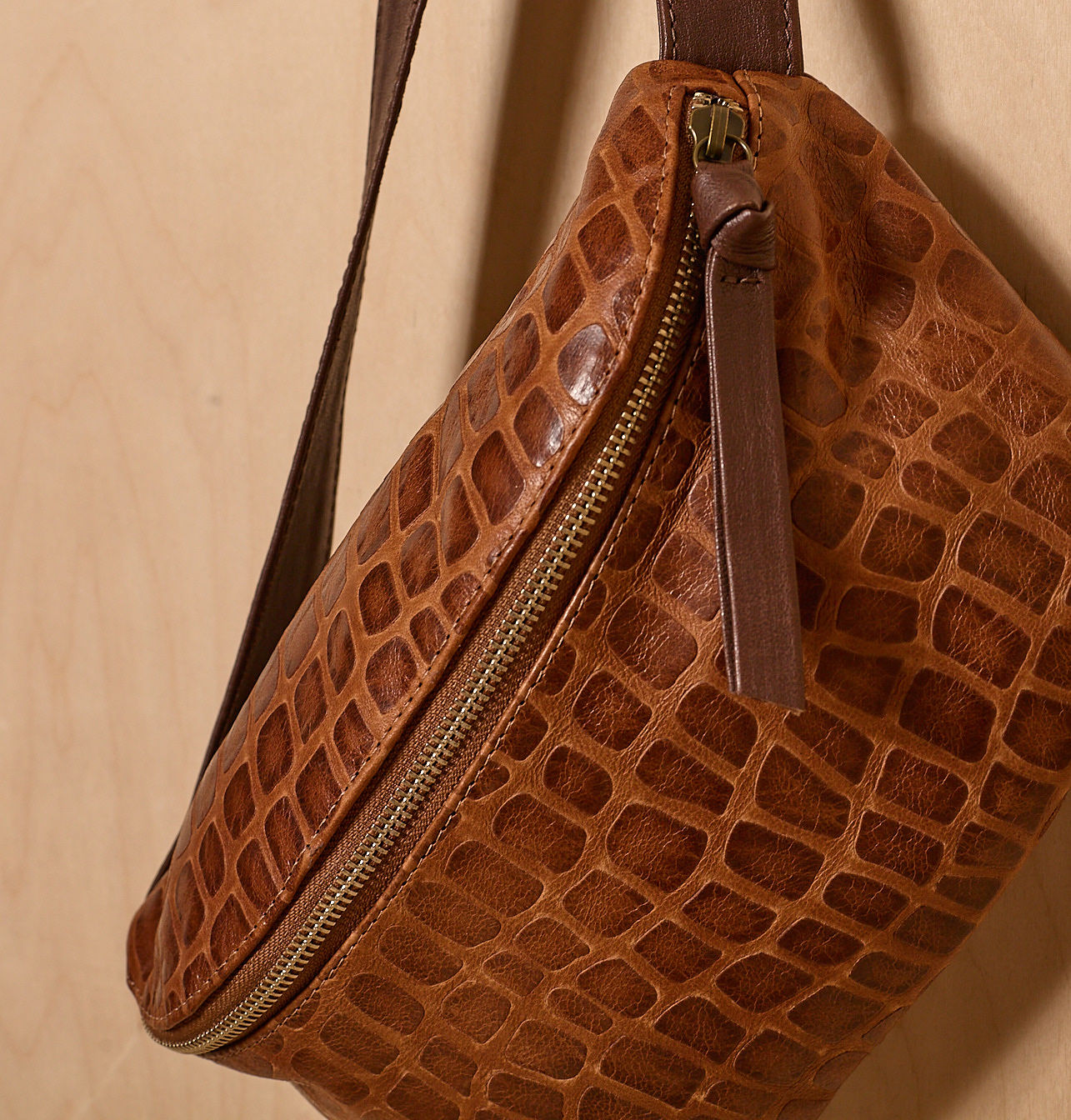 The leather texture was developed based on one of Daniela's iconic leathers, first introduced two decades ago – a contemporary variation on croco, in soft Italian sheepskin with a geometric texture, a wax finish and a sense of uniqueness and handmade character.