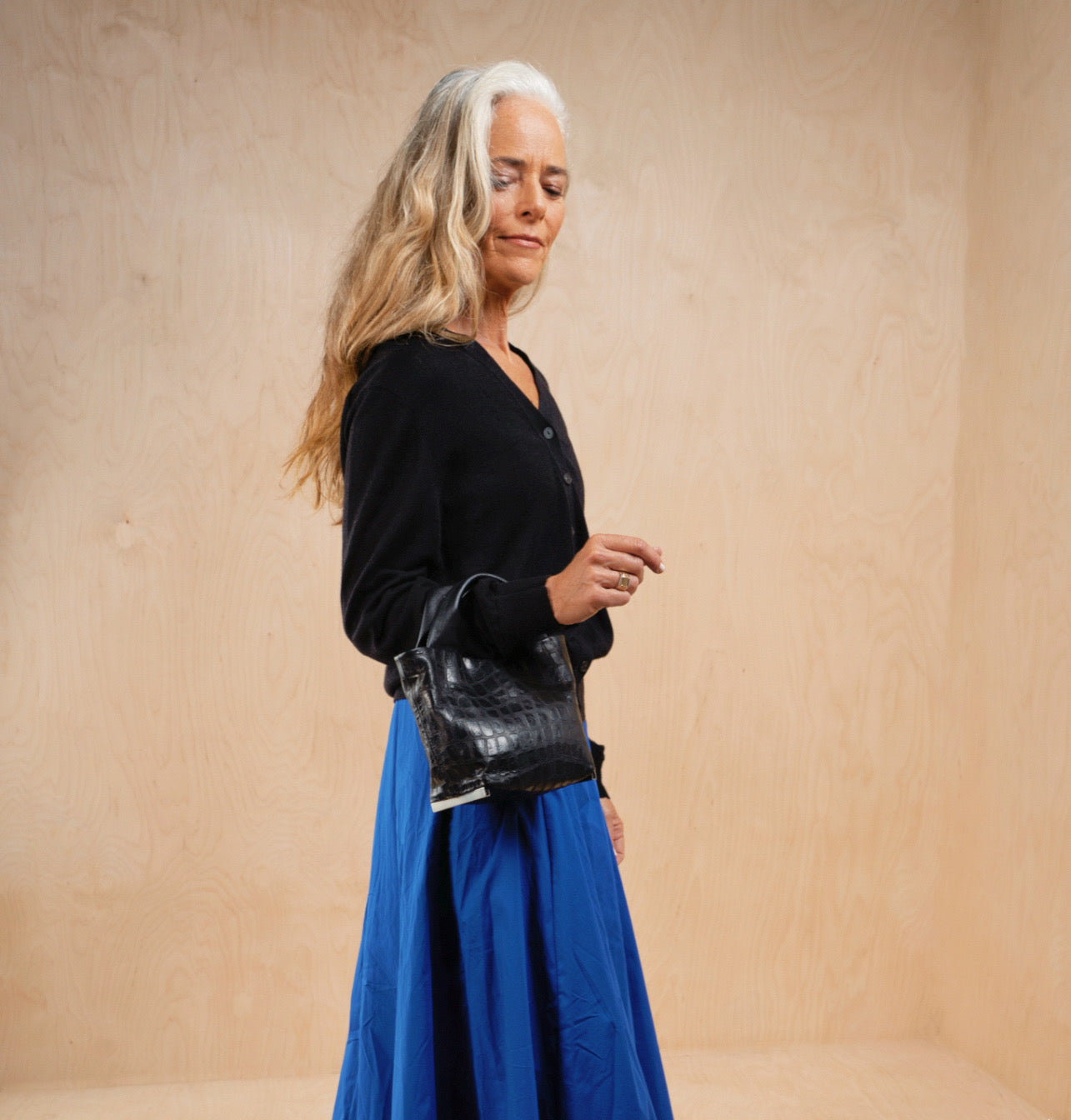 The leather texture was developed based on one of Daniela's iconic leathers, first introduced two decades ago – a contemporary variation on croco, in soft Italian sheepskin with a geometric texture, a wax finish and a sense of uniqueness and handmade character.