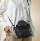 The Alexa Mini Bag can be carried in a variety of ways: as a side bag, crossbody, or over the arm. It has an interior pocket with zipper closure, key holder, and magnetic closure.