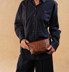 The Lorrie Clutch is the perfect gift: a small bag that can be used as a side bag, an evening clutch, or as a special, designed grooming bag.