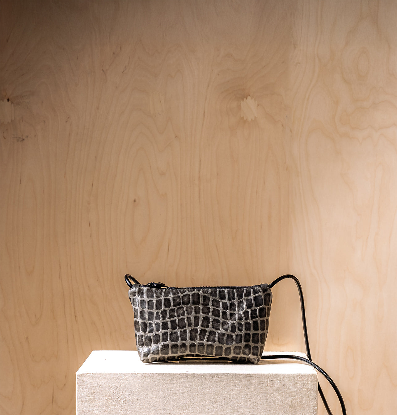 The leather texture was developed based on one of Daniela's iconic leathers, first introduced two decades ago – a contemporary variation on croco, in soft Italian sheepskin with a geometric texture, a wax finish and a sense of uniqueness and handmade character.