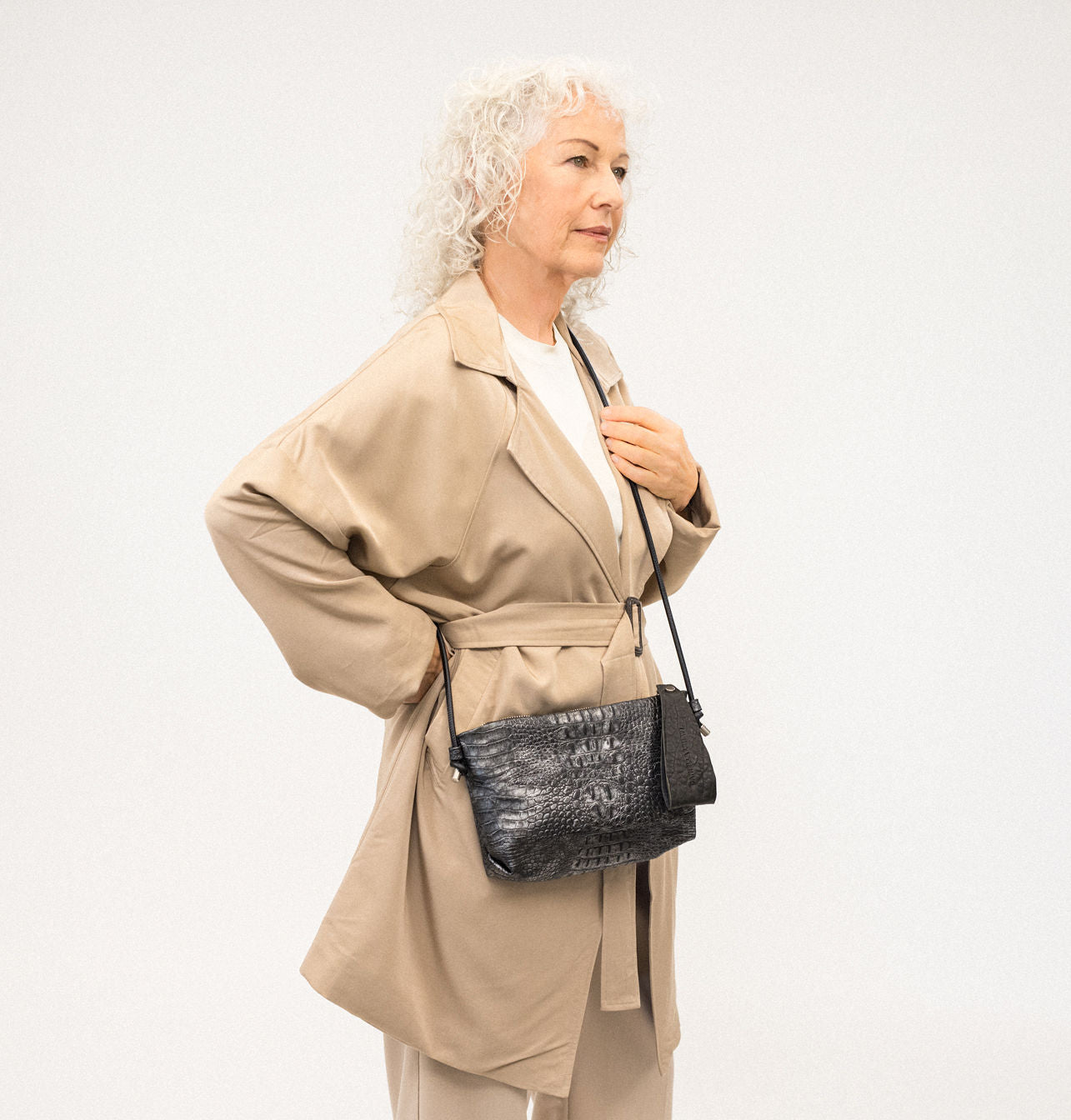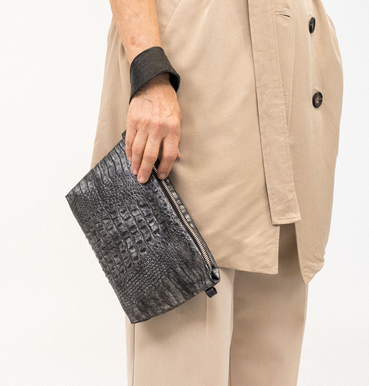 The Vega Small Clutch is a functional and chic piece. It's spacious enough for your essentials, yet slim enough to either tuck under your arm or use as a wristlet.