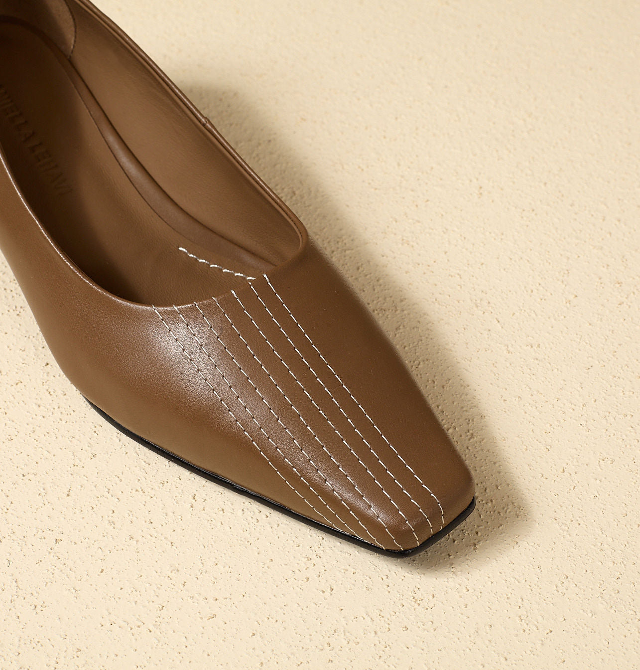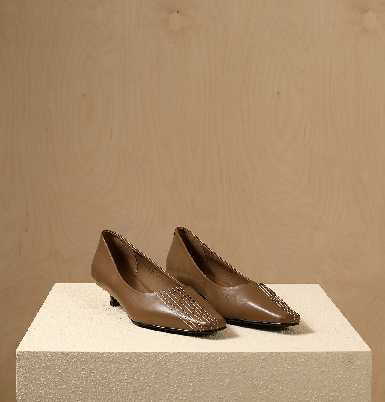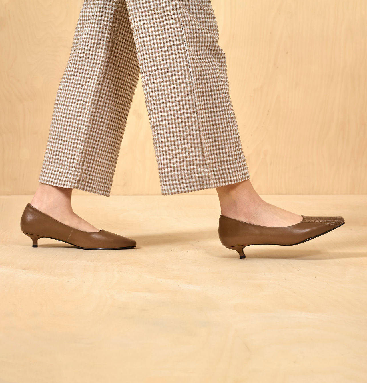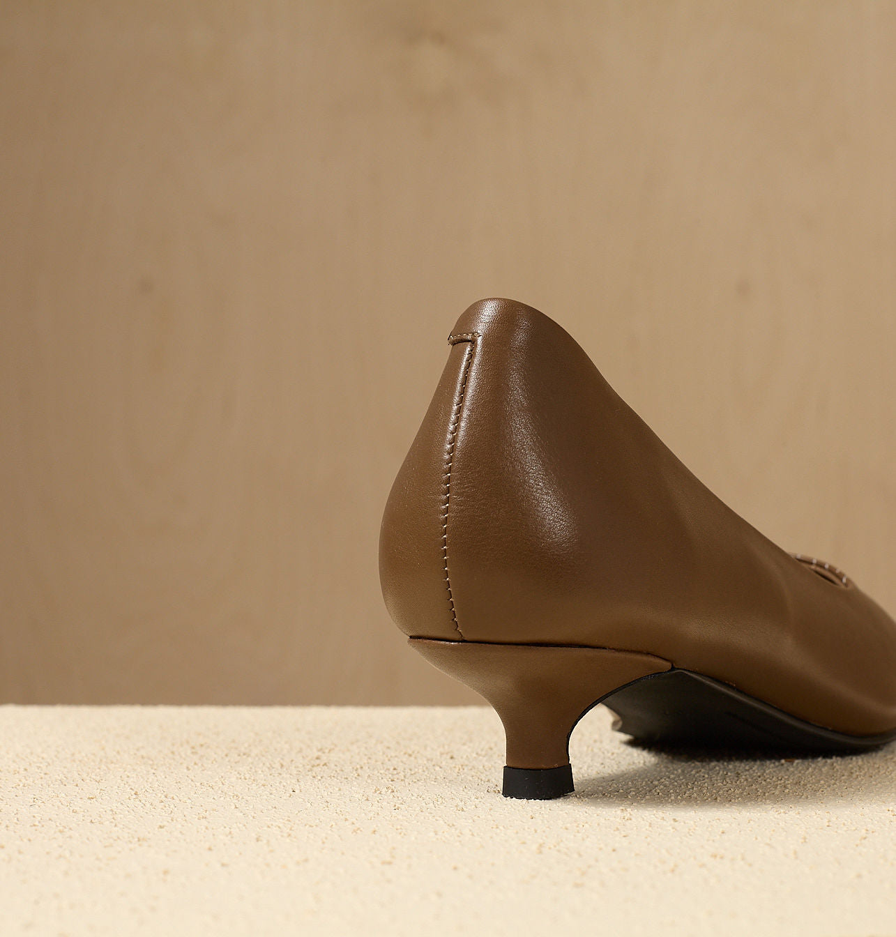 Charlotte Kitten Heel Shoes are elegant Nappa leather ballet flats with stitched detailing for a sophisticated, classic look. A refined pointed-square toe, leather insole for maximum comfort, and a rubber sole with a 1.4 in (3.5 cm) kitten heel provide stability and effortless style for all-day wear.