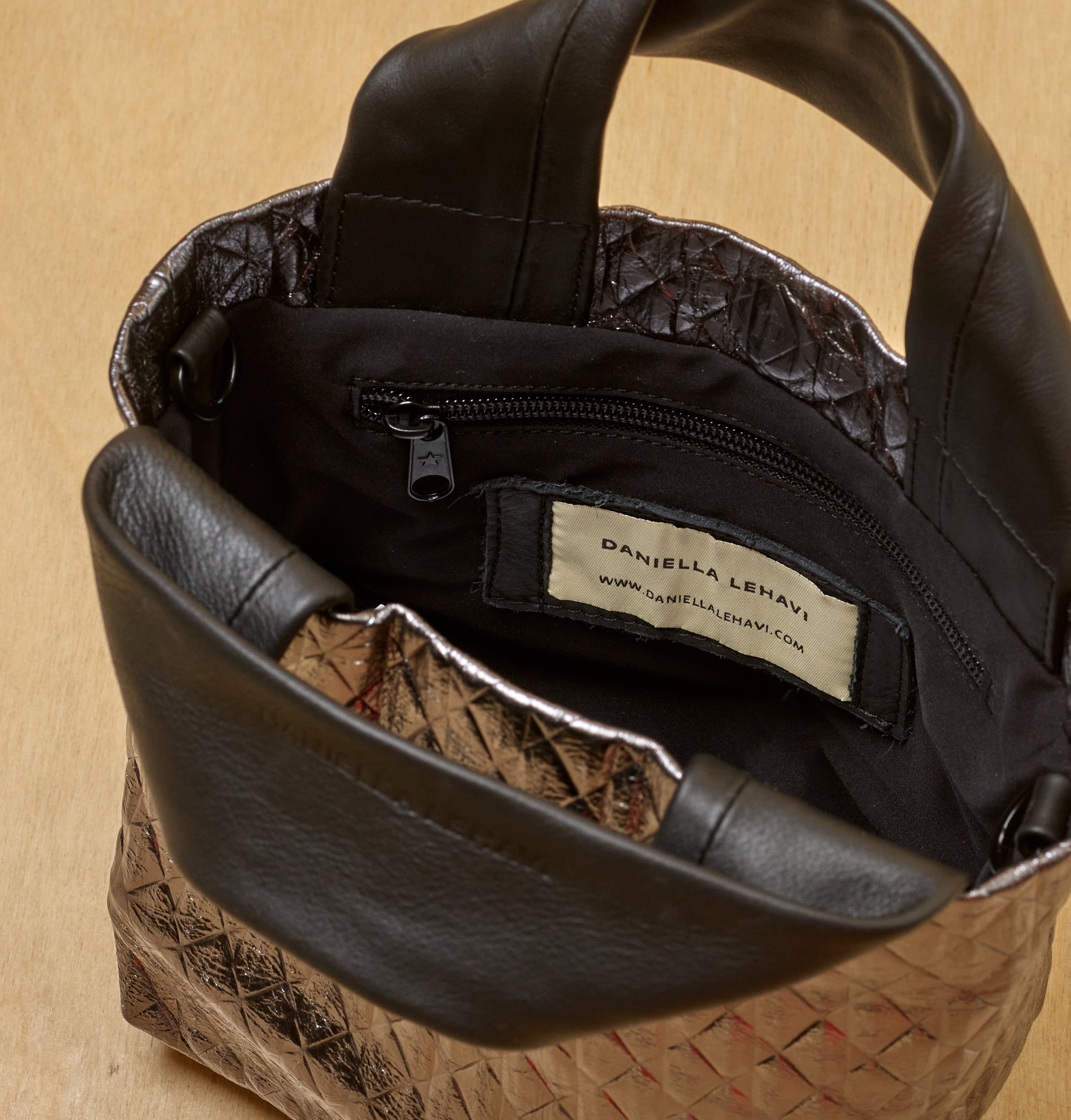Daniella Lehavi's leather handbags are made with love and care from the finest materials. Their various textures and finishes mean each needs a different level of care. In general, use professional leather treatment and protection product for the best result.