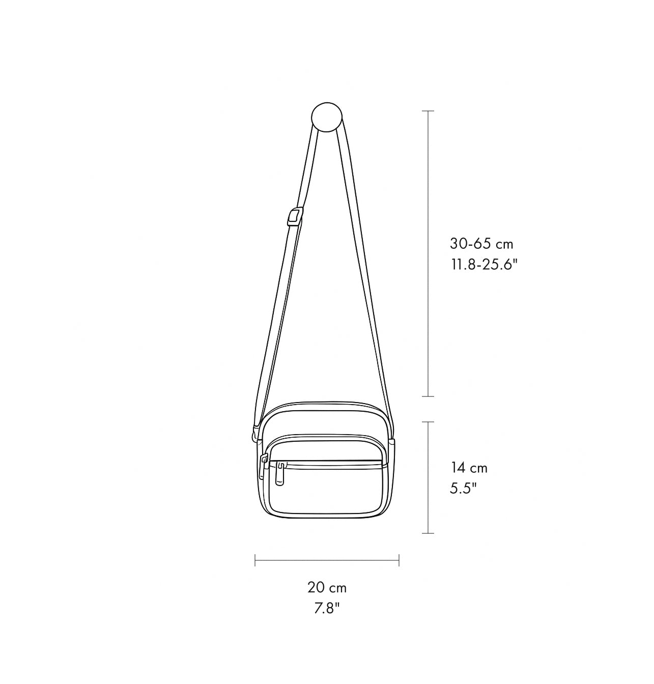 • Adjustable strap length: 140–75 cm / 55.1–29.5″, Strap drop: 65–30 cm / 25.6–11.8″