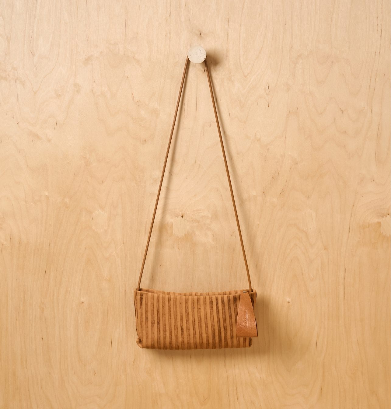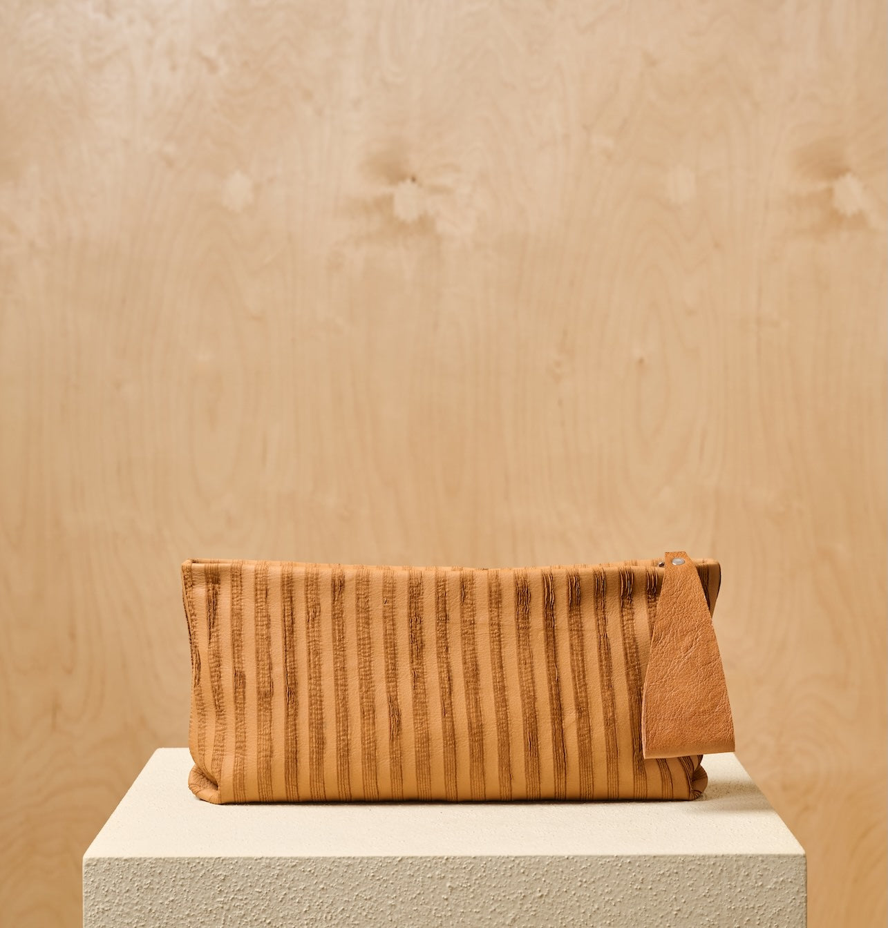 A clean, elongated clutch with a refined leather finish that creates a natural, soft feel. Its long silhouette offers a modern minimal look while remaining practical for everyday use. The compact structure and considered interior layout balance functionality with a polished design.