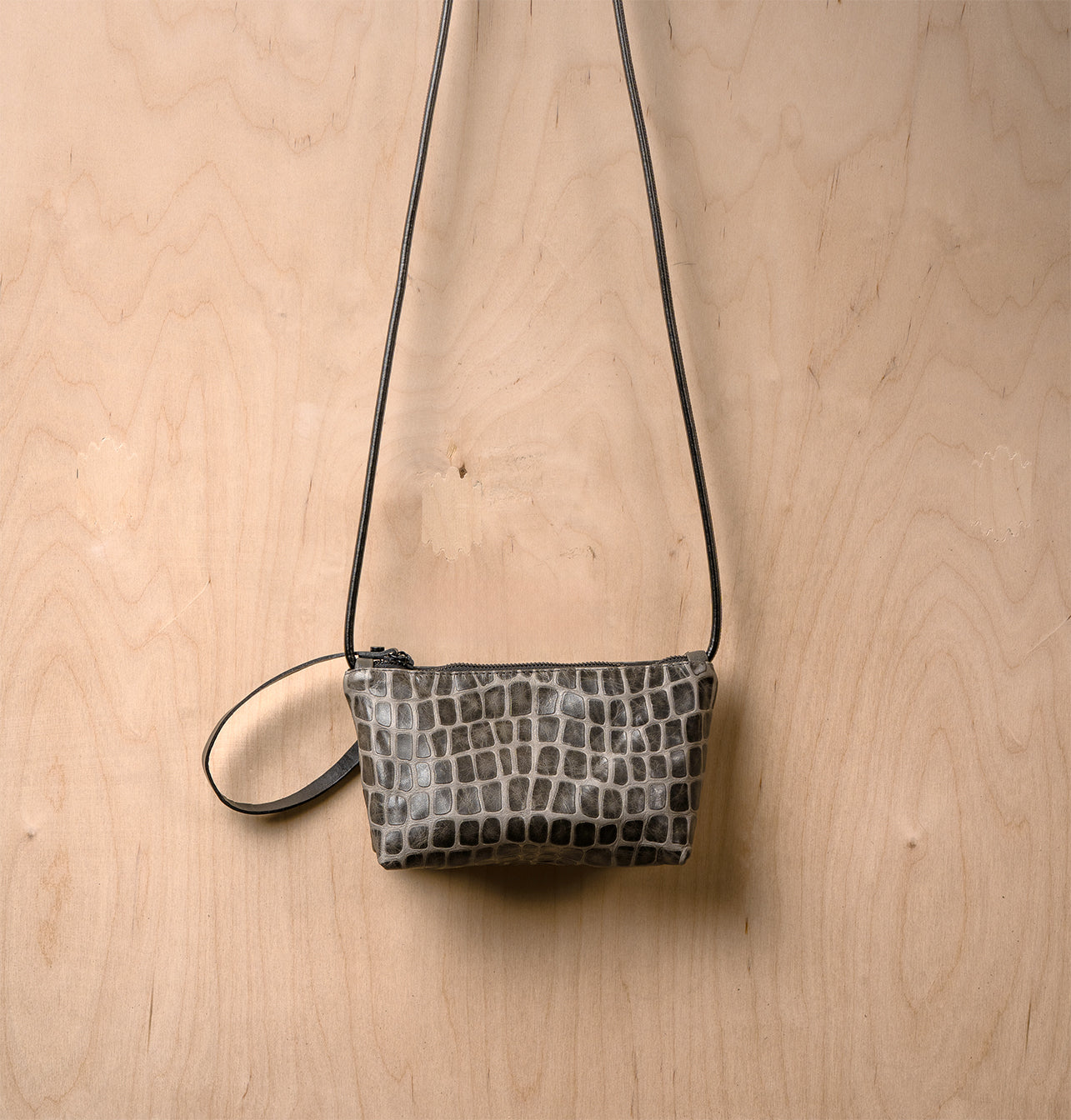 The leather texture was developed based on one of Daniela's iconic leathers, first introduced two decades ago – a contemporary variation on croco, in soft Italian sheepskin with a geometric texture, a wax finish and a sense of uniqueness and handmade character.