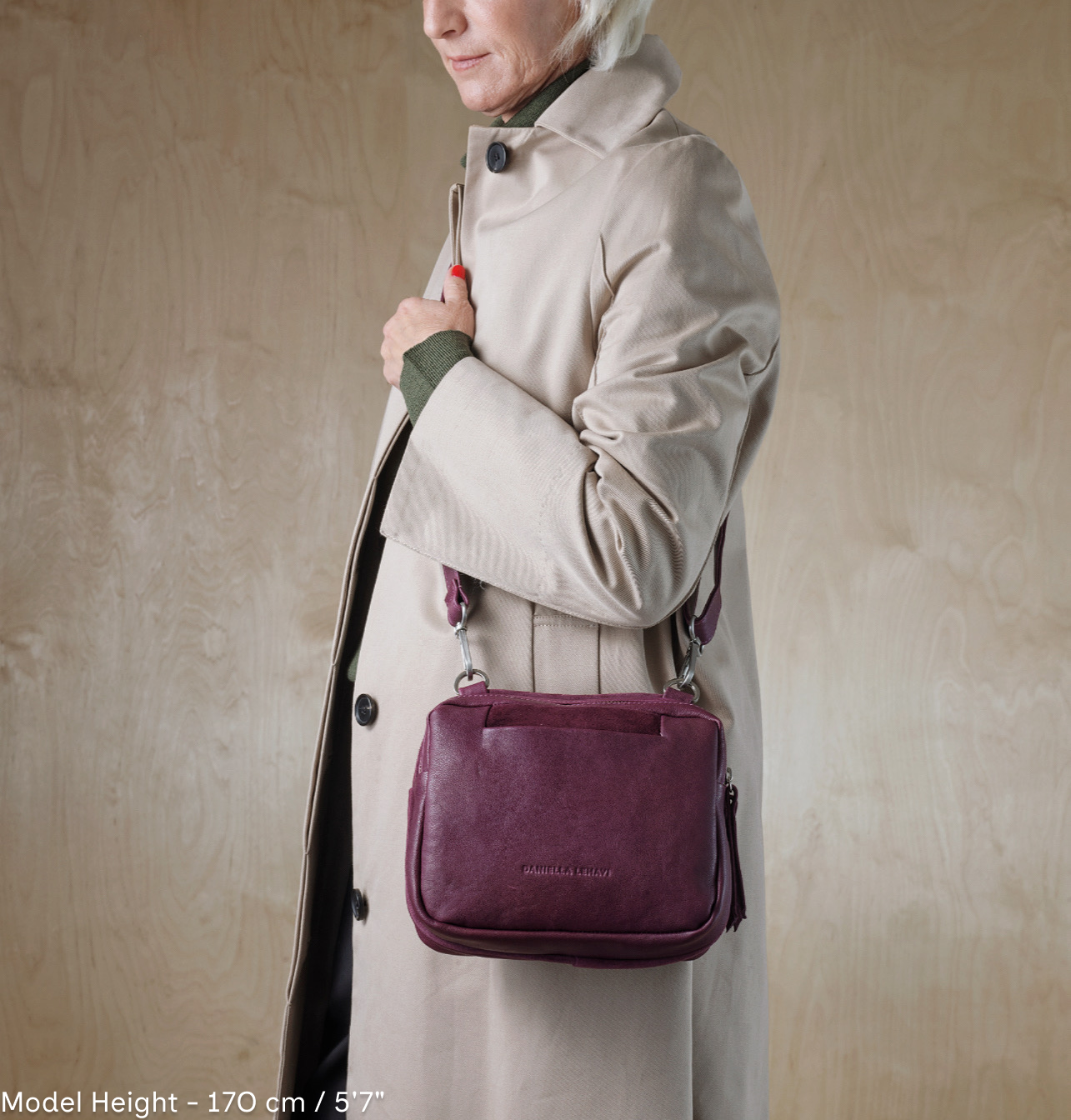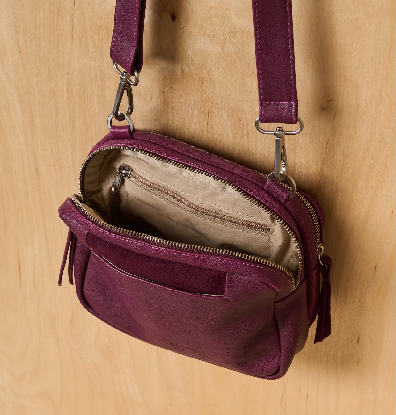 A small crossbody bag with a clean, precise design that blends smart functionality with an elegant look. It features two compartments and a thoughtfully designed interior layout that keeps your items organized. The bag includes an easily accessible exterior pocket and an adjustable strap that allows you to wear it on the shoulder or crossbody.