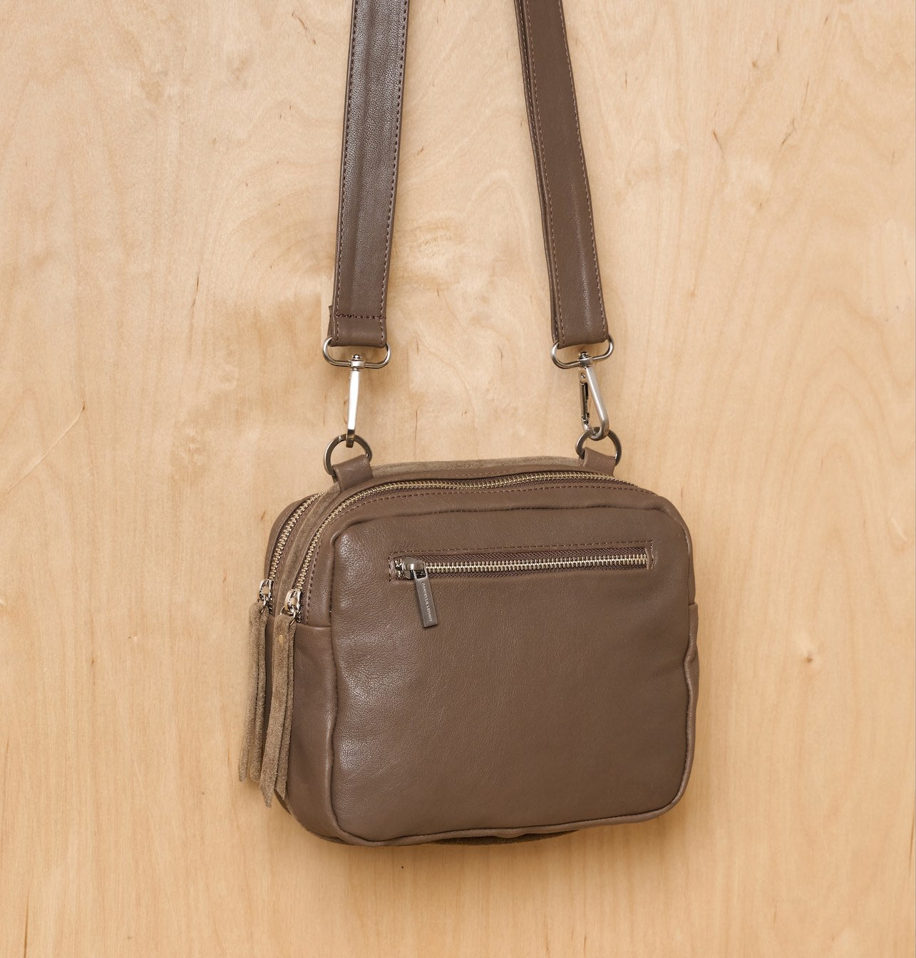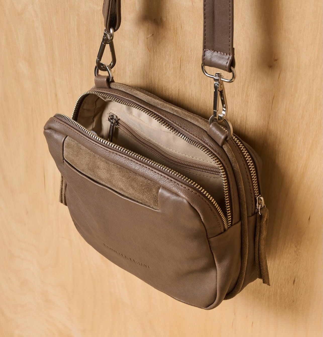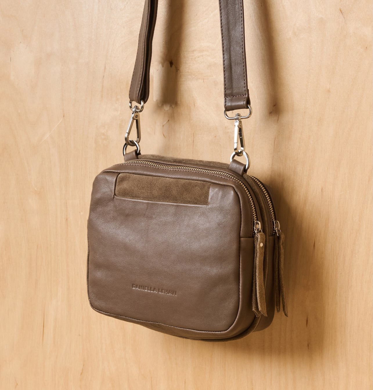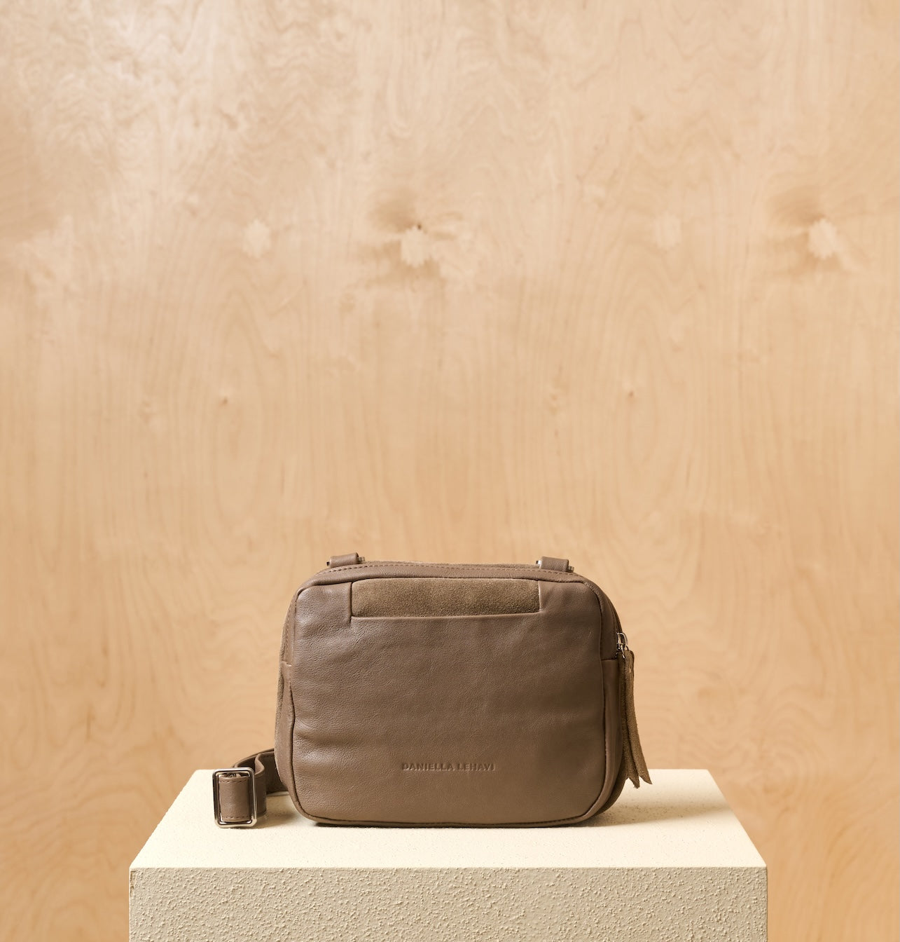 A small crossbody bag with a clean, precise design that blends smart functionality with an elegant look. It features two compartments and a thoughtfully designed interior layout that keeps your items organized. The bag includes an easily accessible exterior pocket and an adjustable strap that allows you to wear it on the shoulder or crossbody.