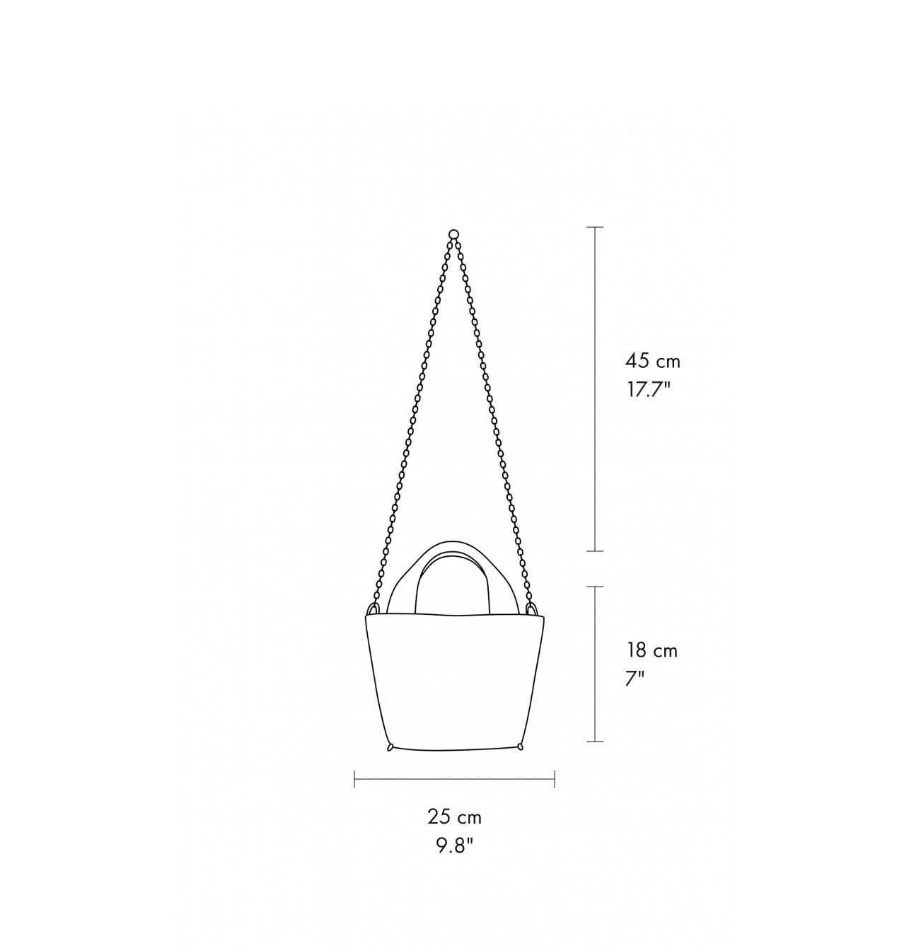 - Chain strap length: 100 cm / 39.4″, Strap drop: 45 cm / 17.7″
