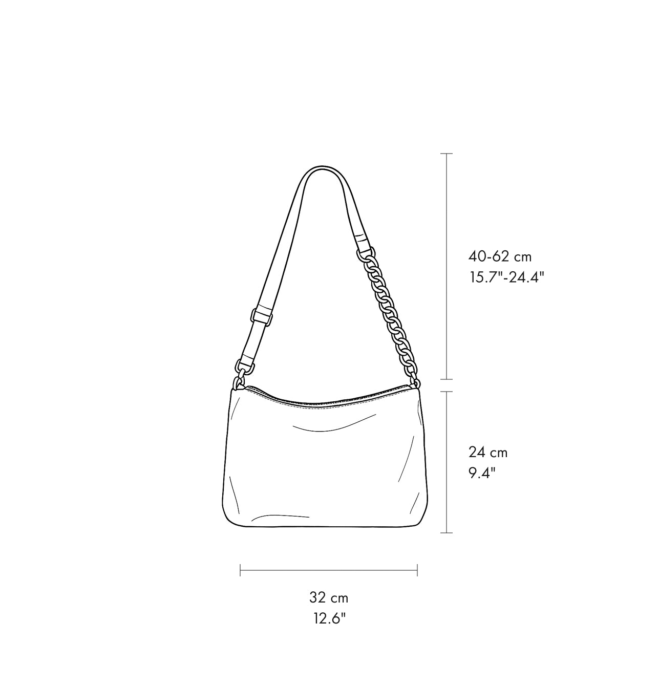 Strap drop with chain: 38–60 cm