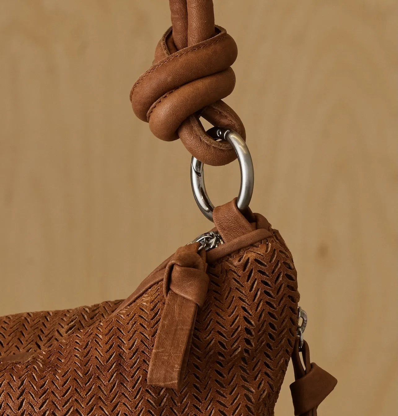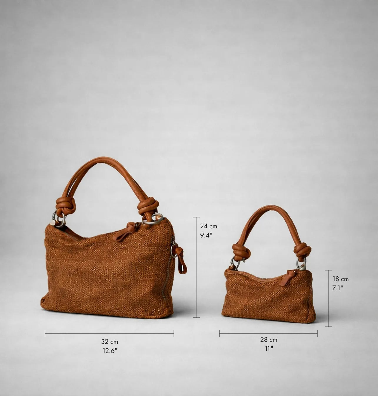 - שתי רצועות נשלפות: רצועת כתף קצרה עם קשר עיצובי באורך 50 ס"מ, אורך נשיאה 20 ס״מ