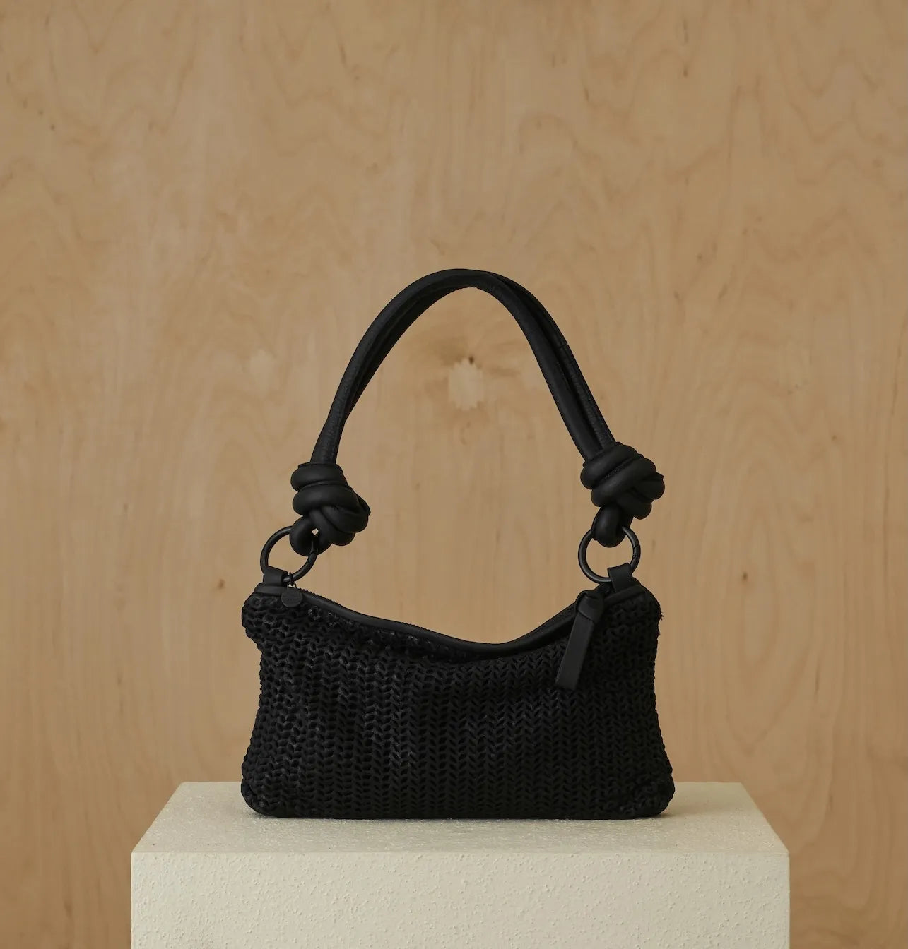The bag comes with two detachable straps: a short shoulder strap featuring a knotted design element, and a long adjustable strap – allowing you to choose how to carry it, on the shoulder or crossbody.