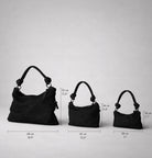 - Two detachable straps: short shoulder strap with knotted detail, length 49 cm (19.3″), drop 16 cm (6.3″); long adjustable strap, length 113–128 cm (44.5–50.4″)