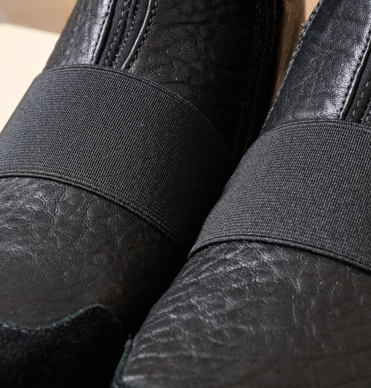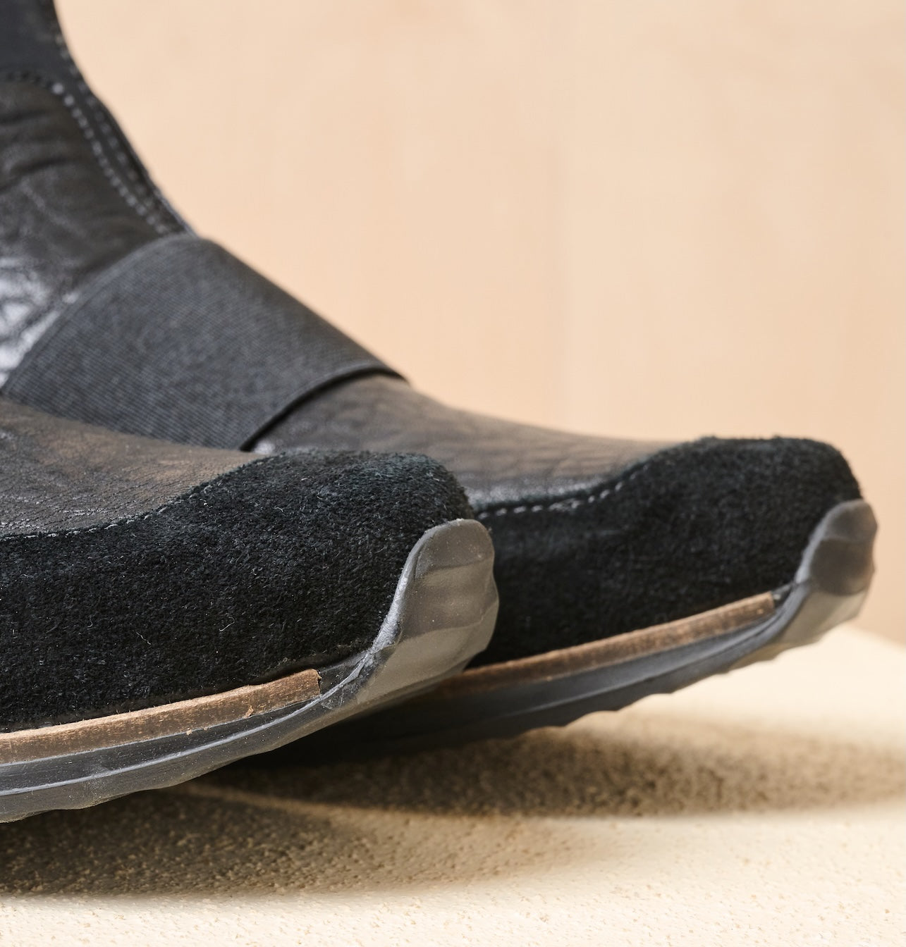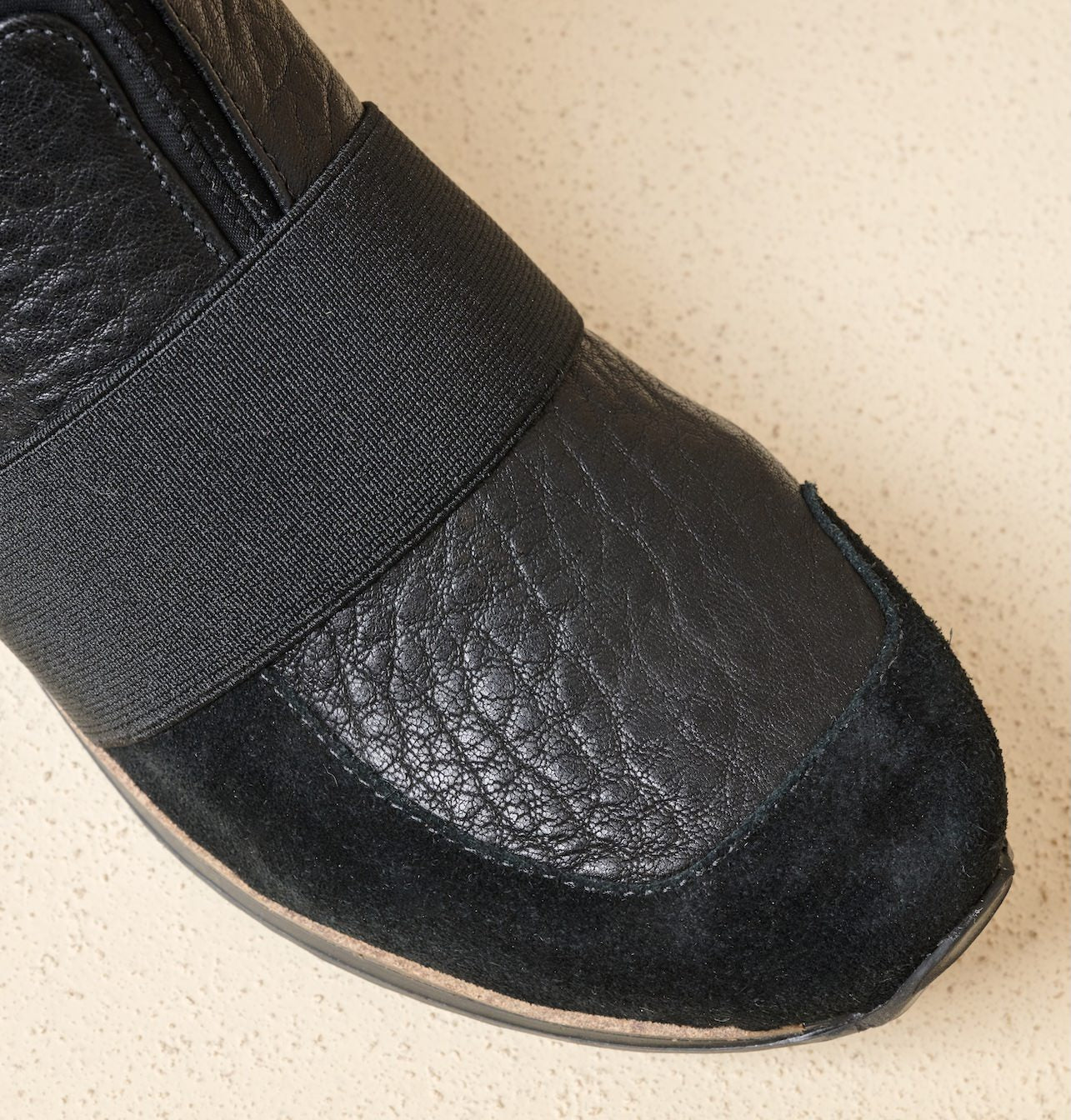 The original combination of materials includes: firm leather, elastic straps, and panels of high-quality suede.
