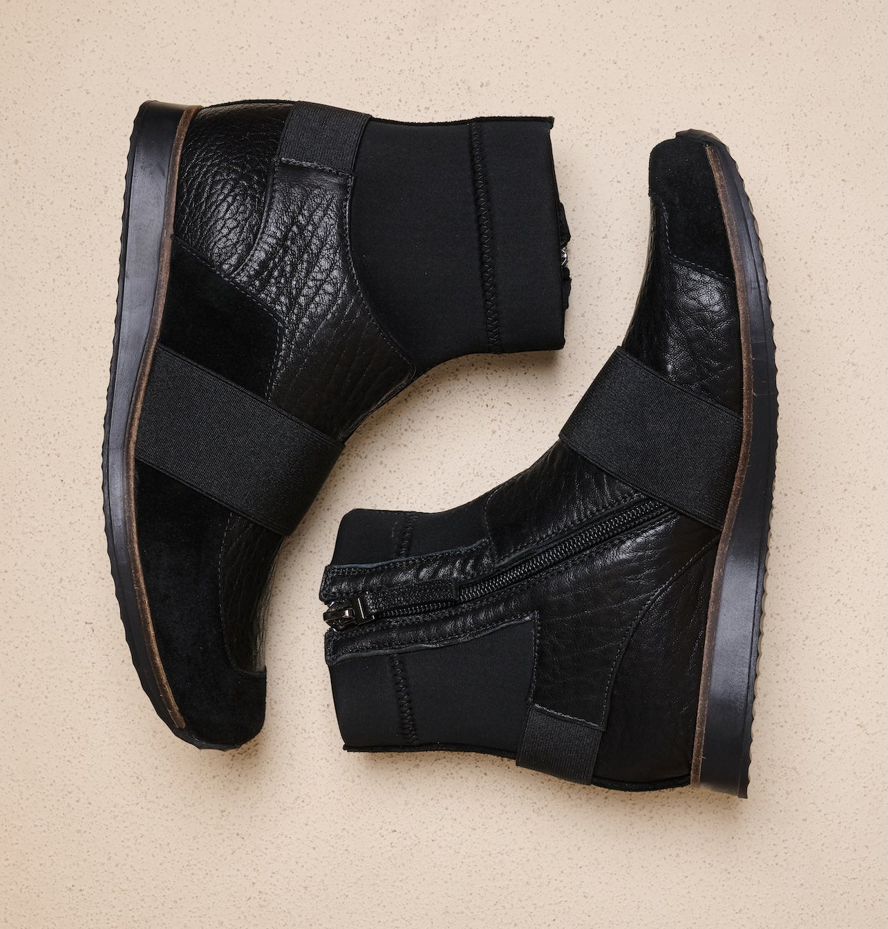 The upper part is made of a unique stretch-knit texture that will give you boots with a modern and comfortable look for any style.