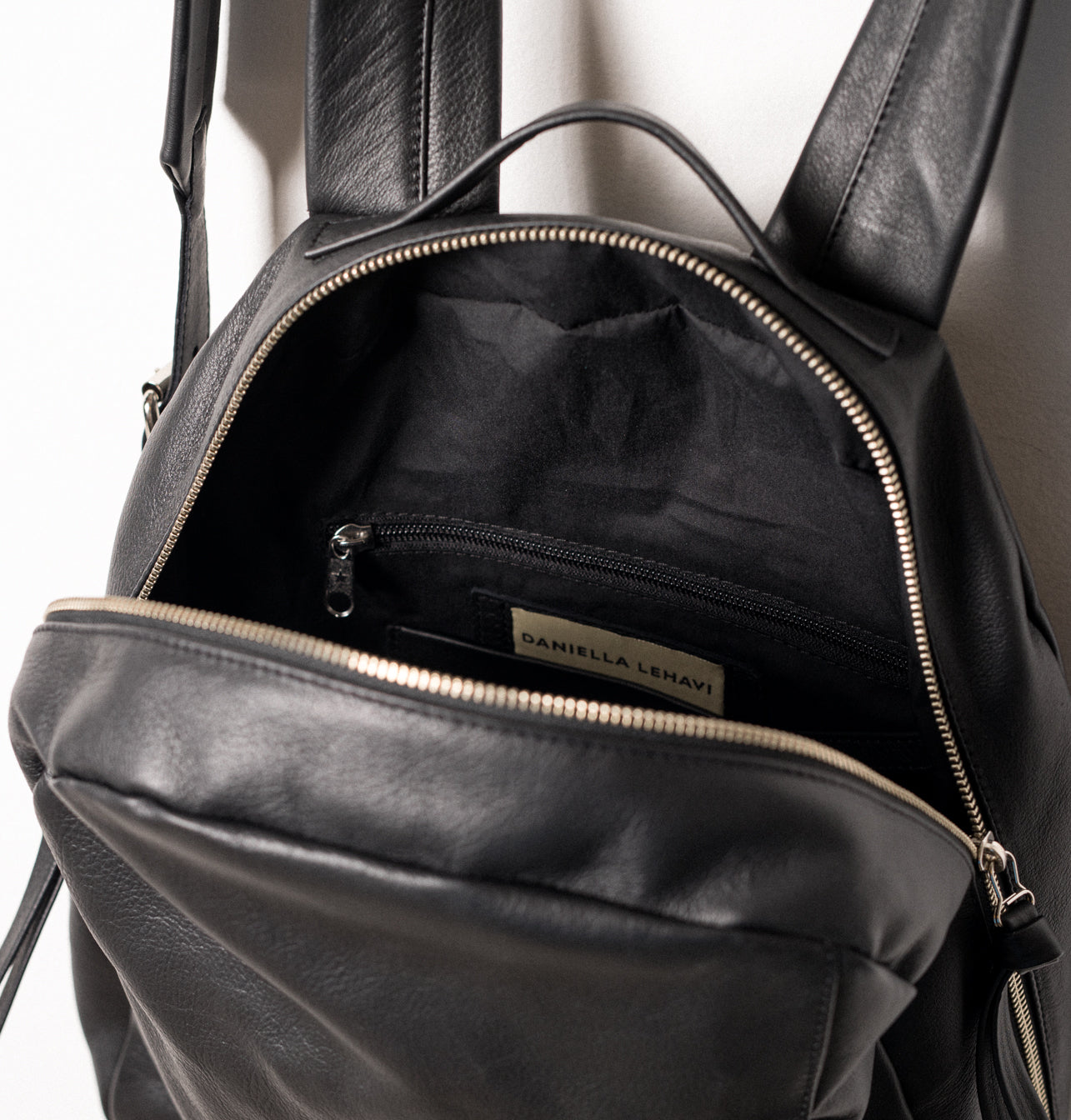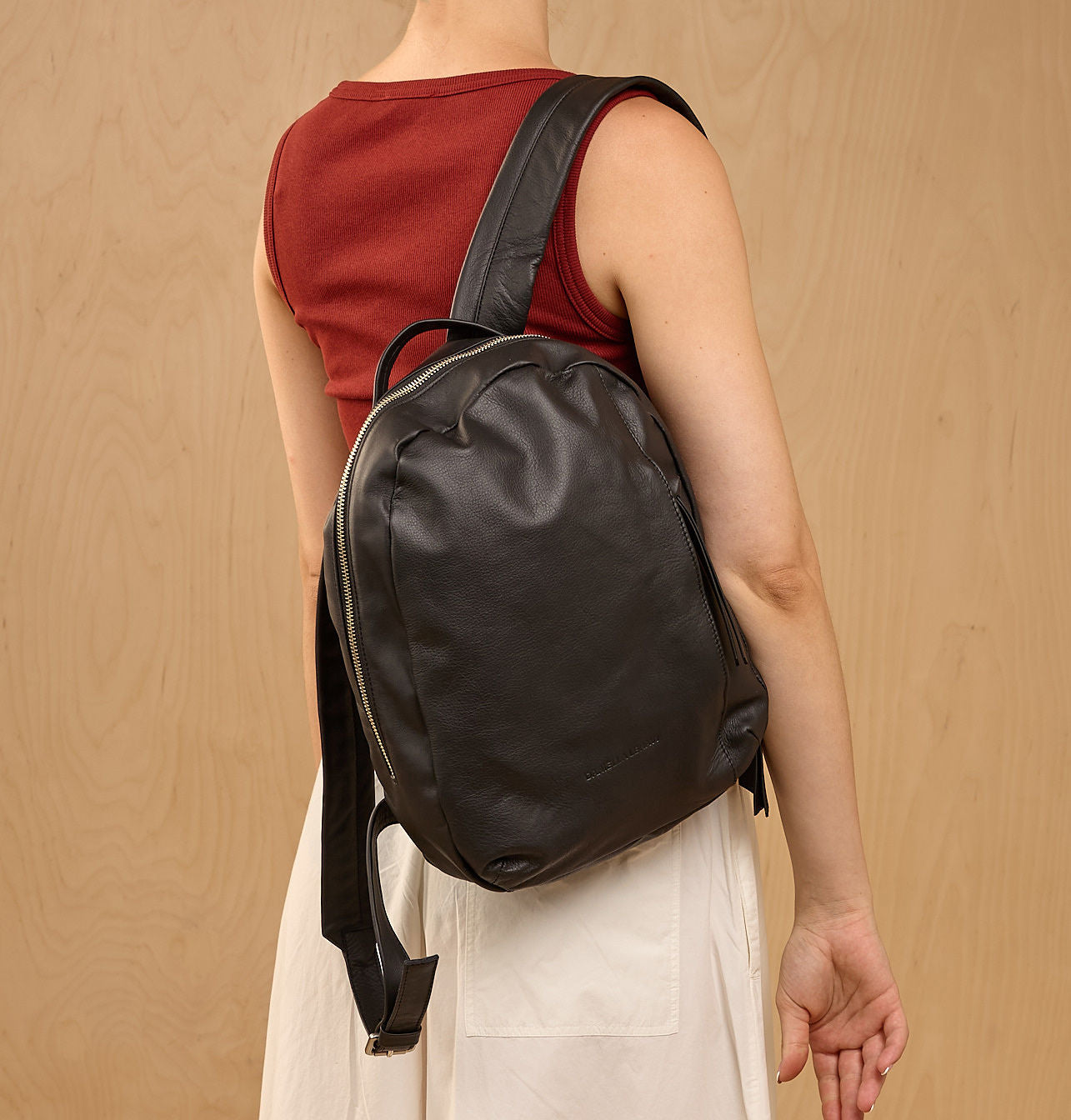 The Ori Small Backpack, designed for the creative director of Daniela Lehavi, is a timeless unisex model. Crafted from soft, textured Italian leather, this backpack features an elegant elliptical shape and a well-organized interior. The spacious main compartment includes small pockets for convenient storage of personal items, while zippered pockets on the front and back provide additional functionality. Adjustable shoulder straps ensure a personalized fit, making it the perfect blend of style and practicality.