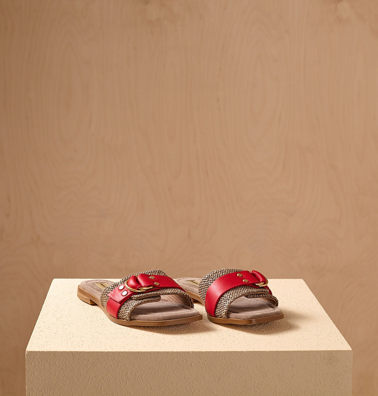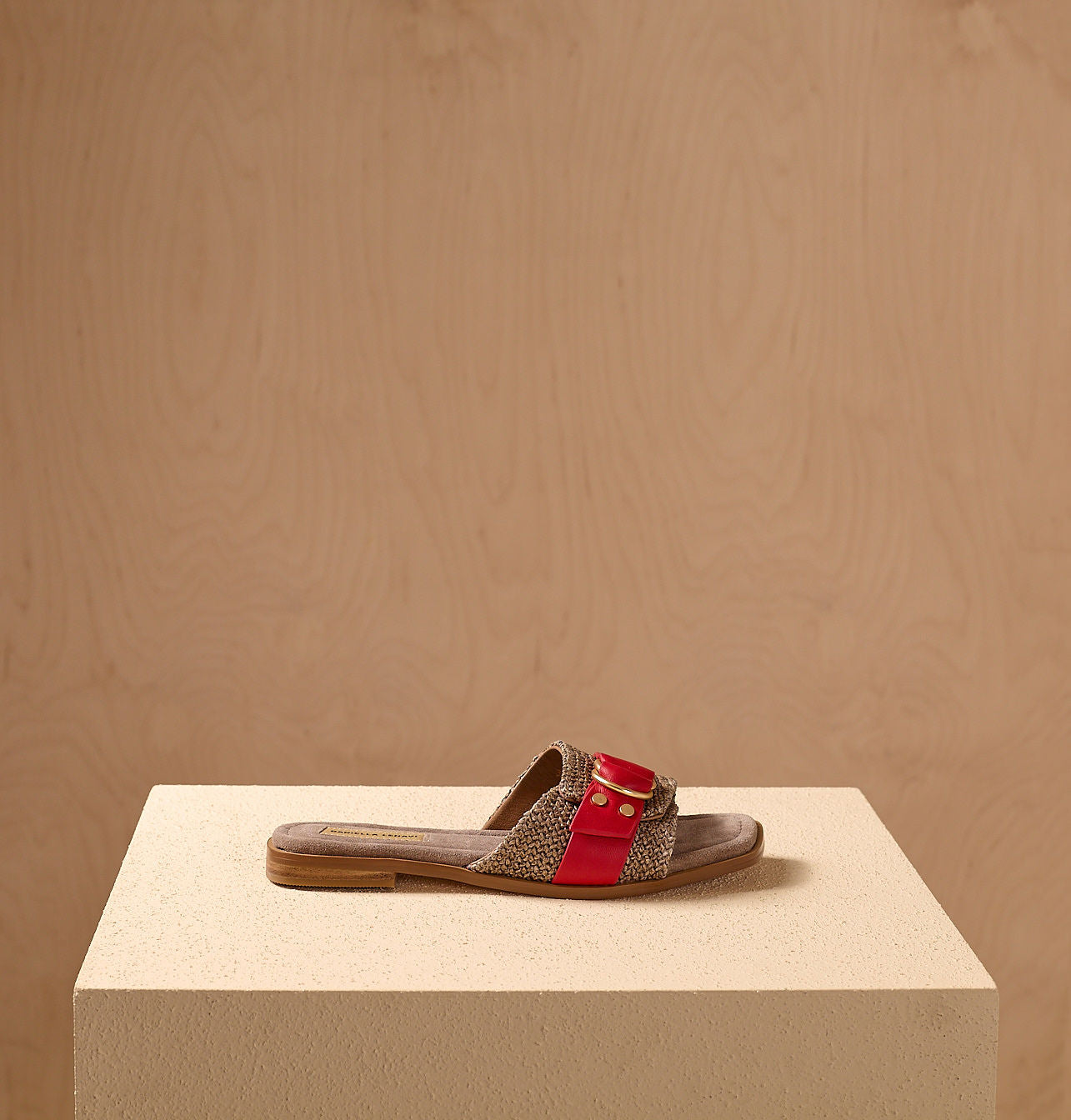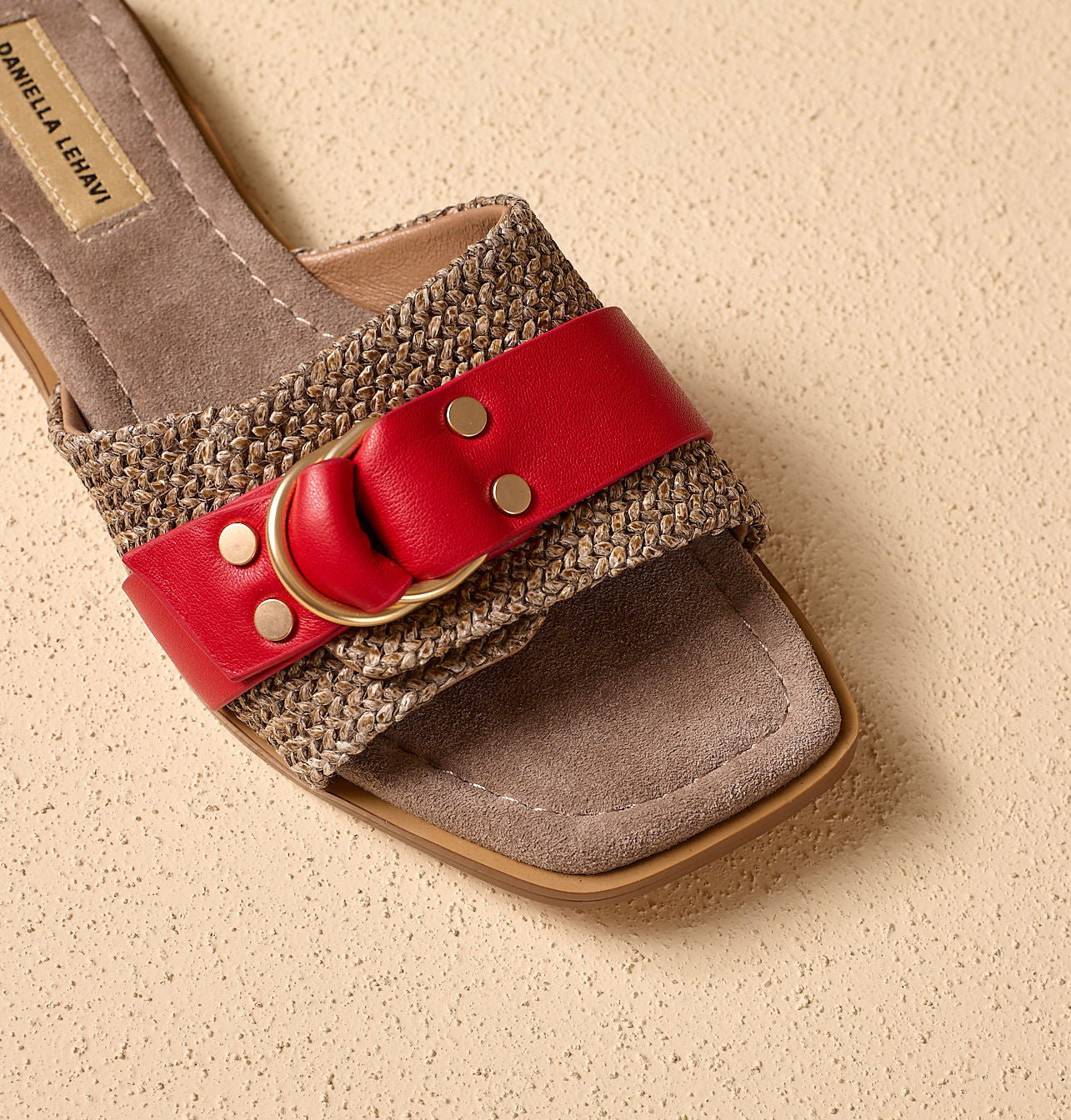 Raffia and leather upper