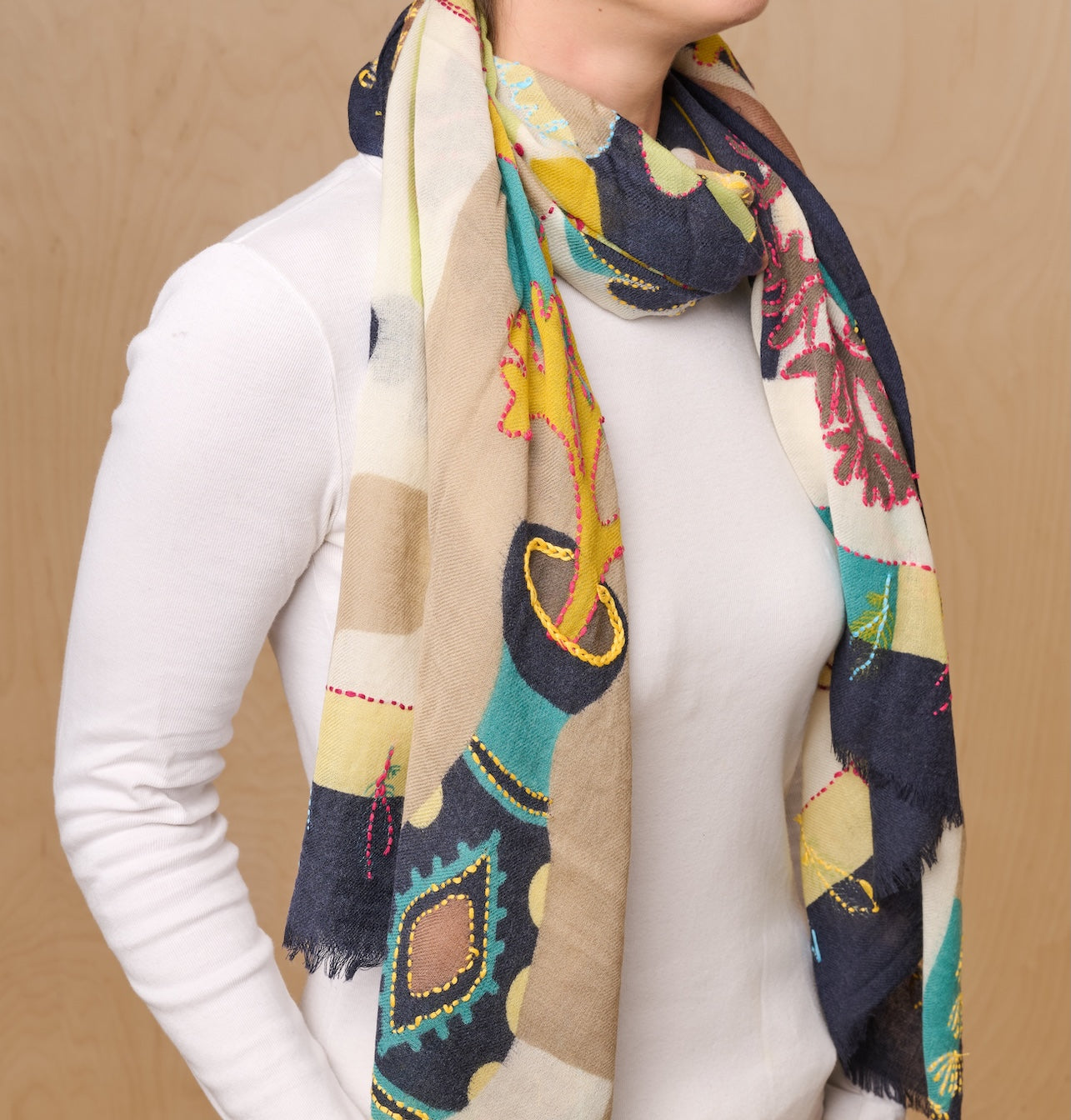 The French brand Storiatipic combines art and elegance with an emphasis on high-quality materials and unique designs. Each scarf is carefully woven, with hand-finished details that give it a distinctive character.