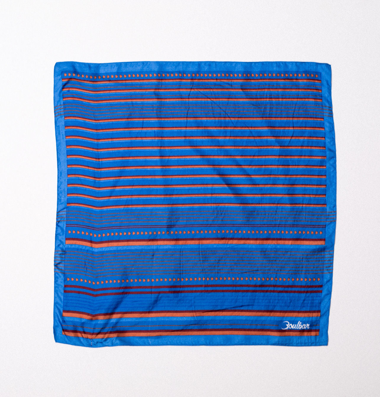 A hand-crafted silk scarf from Boulbar. The scarf is square-shaped and features a striped print.