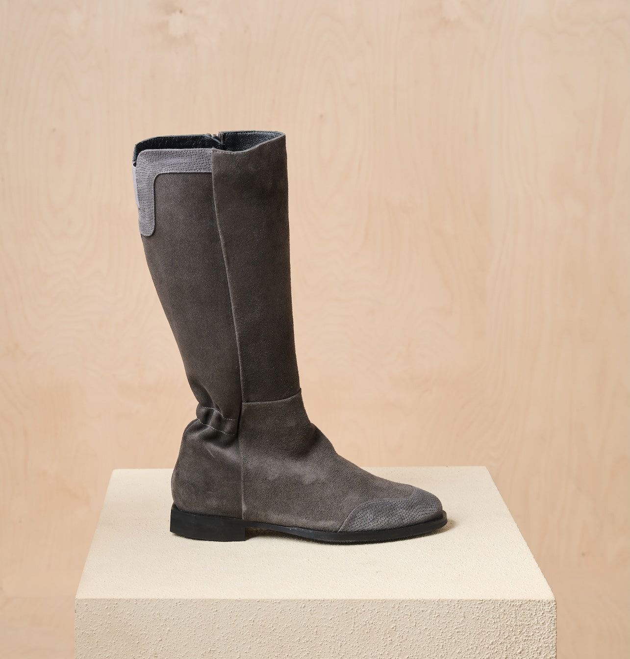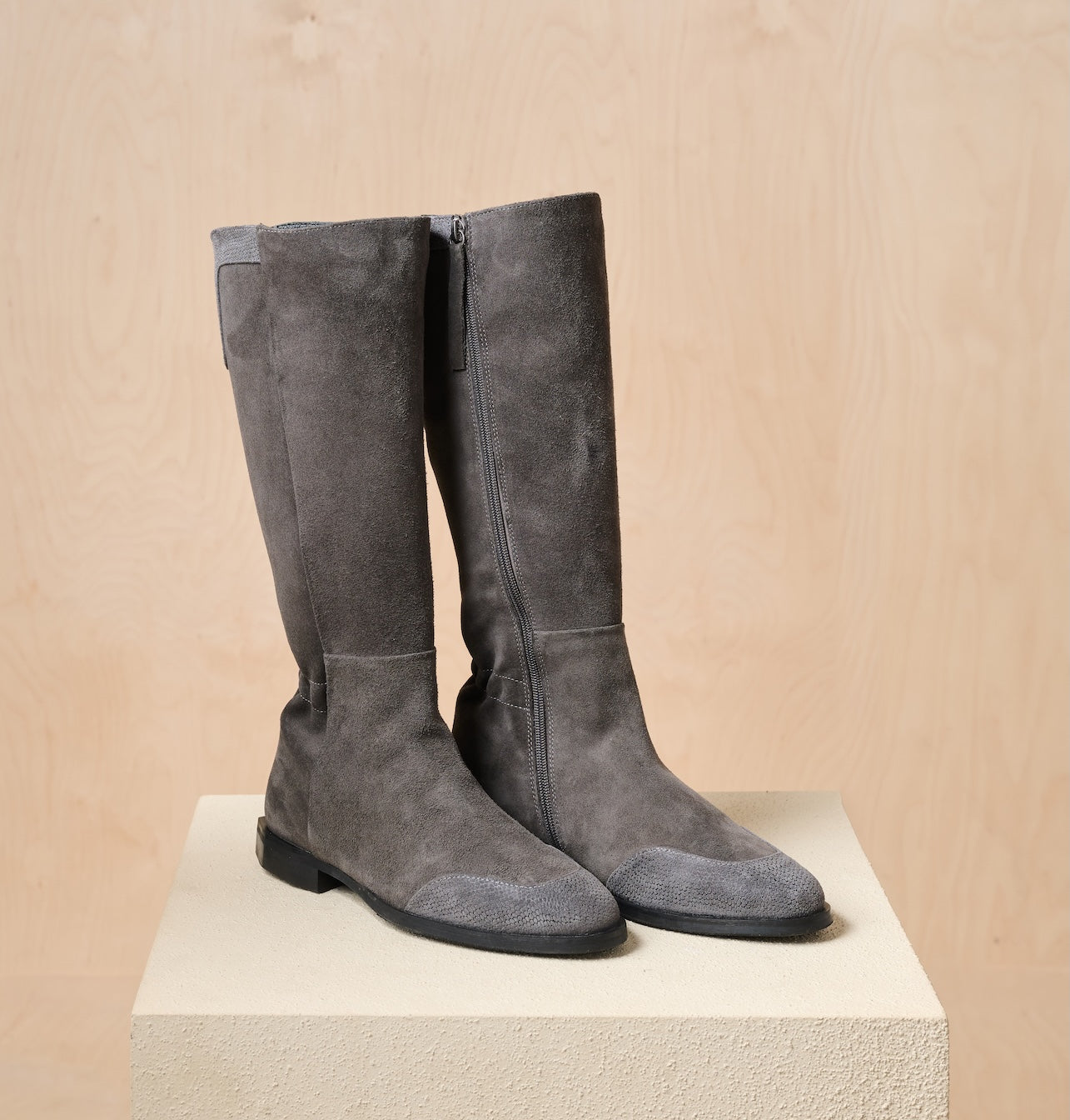 Atlanta High Boots are tall boots with a precise, clean design, crafted from suede combined with leather and Lycra, reaching the perfect height just below the knee. The flexible fit makes them suitable for wider feet, while the side zip allows for easy on and off.