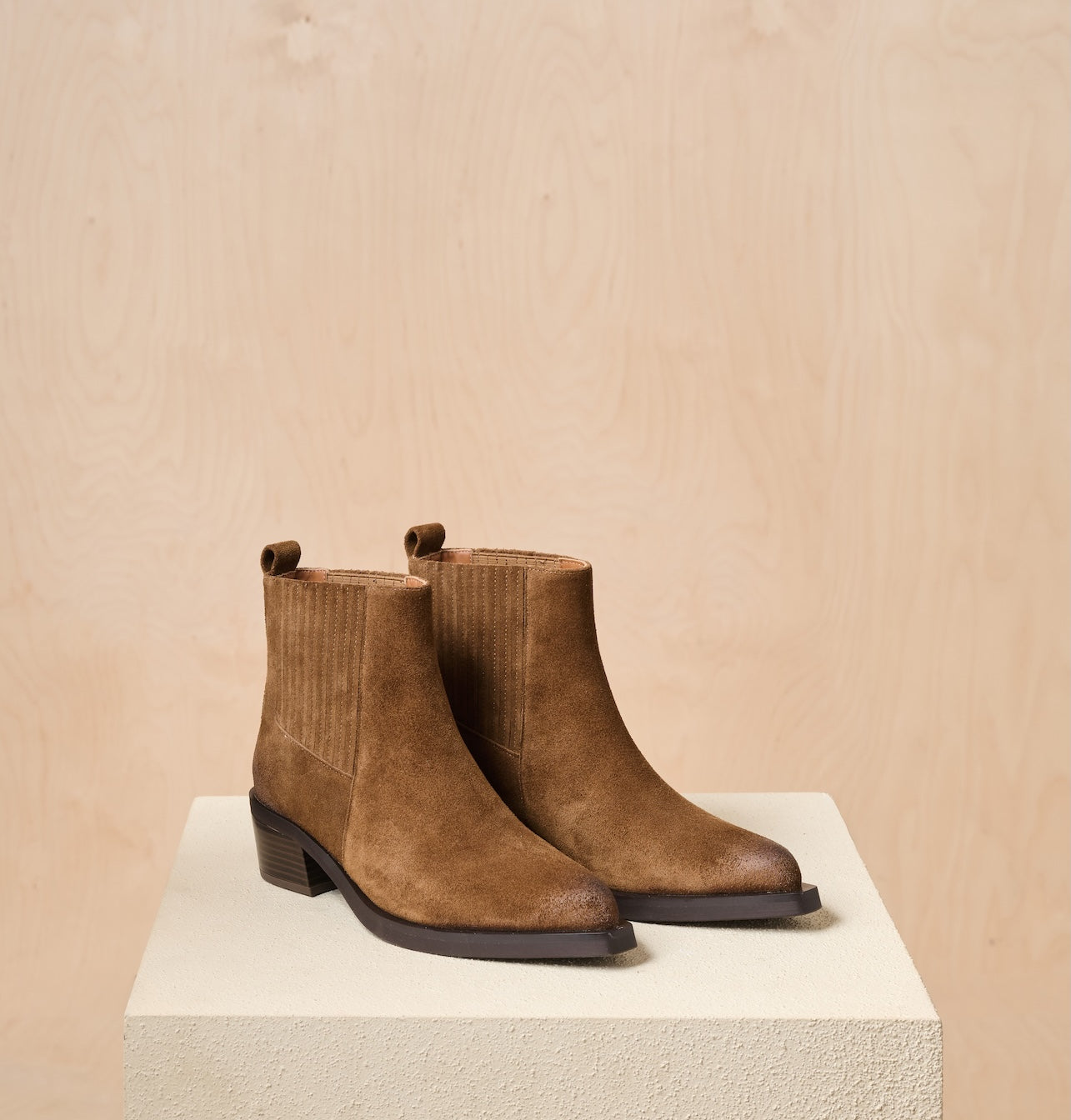 Montana Chelsea Boots are suede ankle boots in the classic Chelsea silhouette, featuring a slim profile and pointed toe for a sleek, refined look.