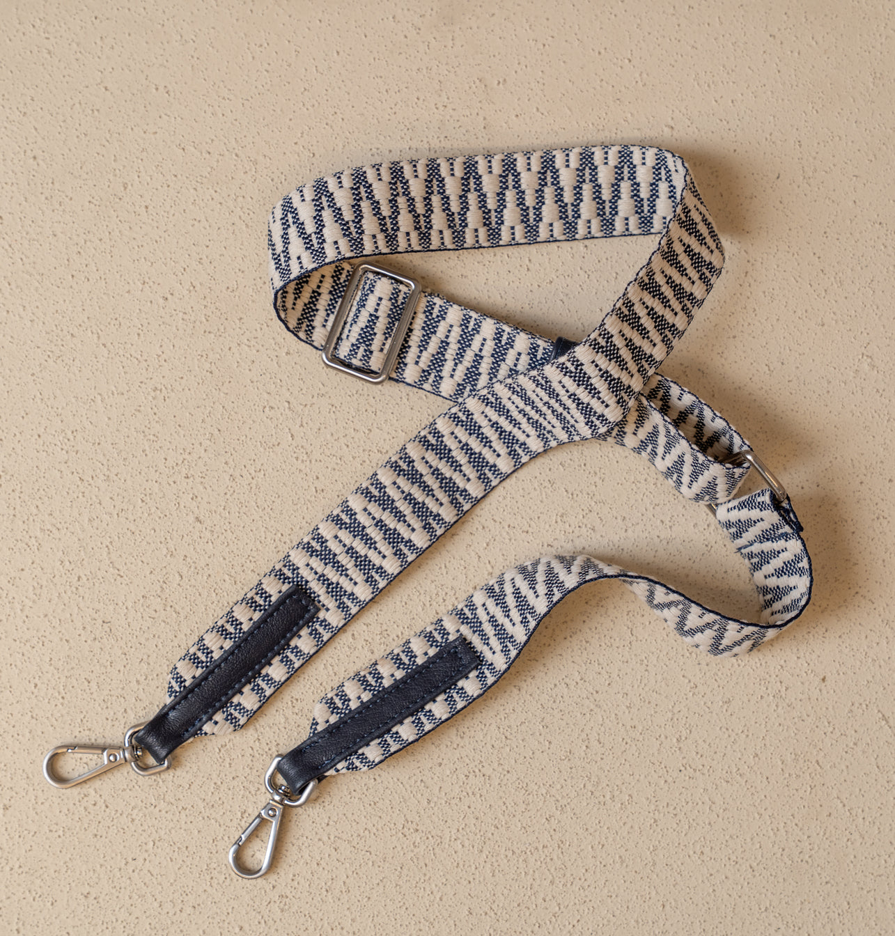 Lima Strap רצועת בד רקומה בדוגמה אתנית- בוהמיינית, עם קצוות עור וקרסי מתכת כסופים. מאפשרת להחליף ולהתאים אישית את מראה התיק בקלות ובמהירות. מתאימה לכל אחד מתיקי ה Lima שלנו.