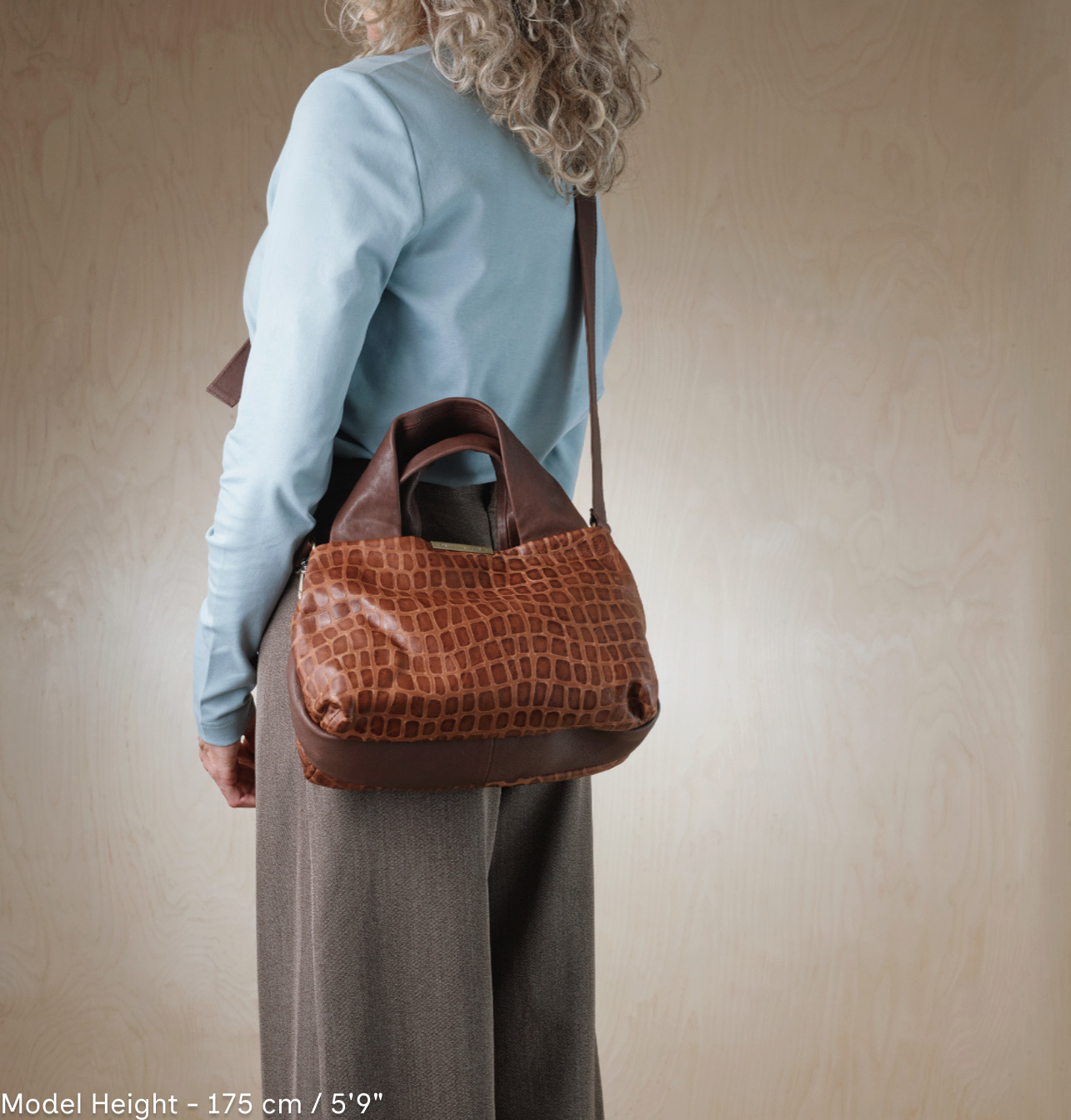 The leather texture was developed based on one of Daniela's iconic leathers, first introduced two decades ago – a contemporary variation on croco, in soft Italian sheepskin with a geometric texture, a wax finish and a sense of uniqueness and handmade character.