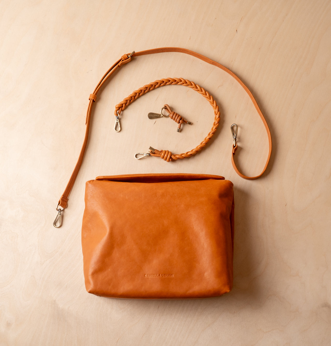 - Braided leather shoulder strap
