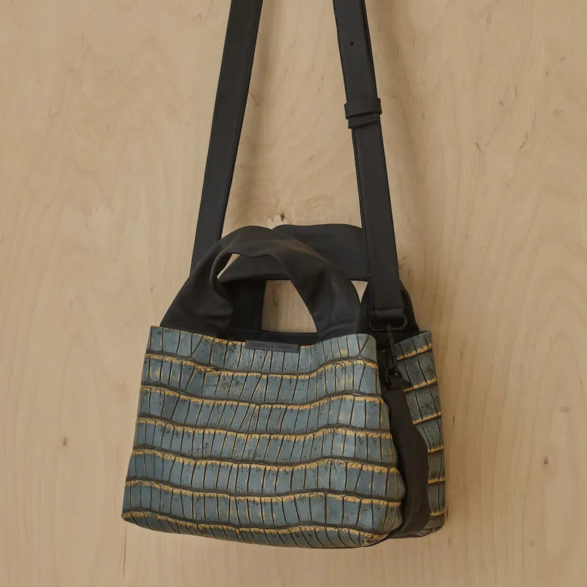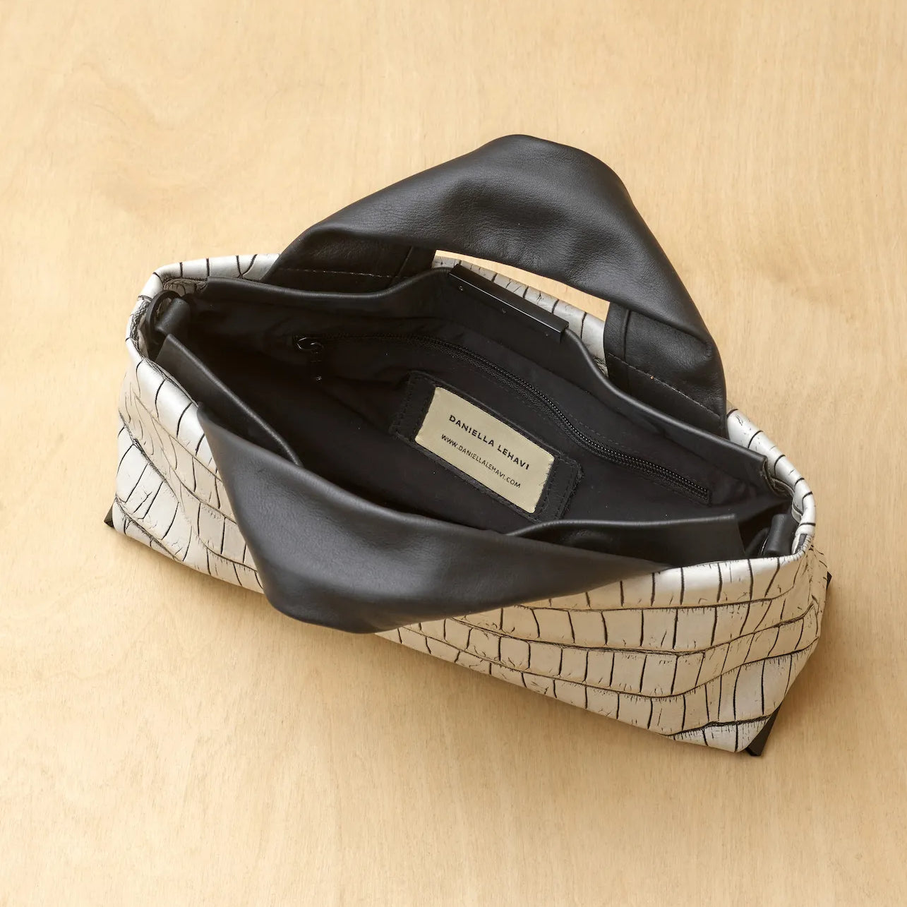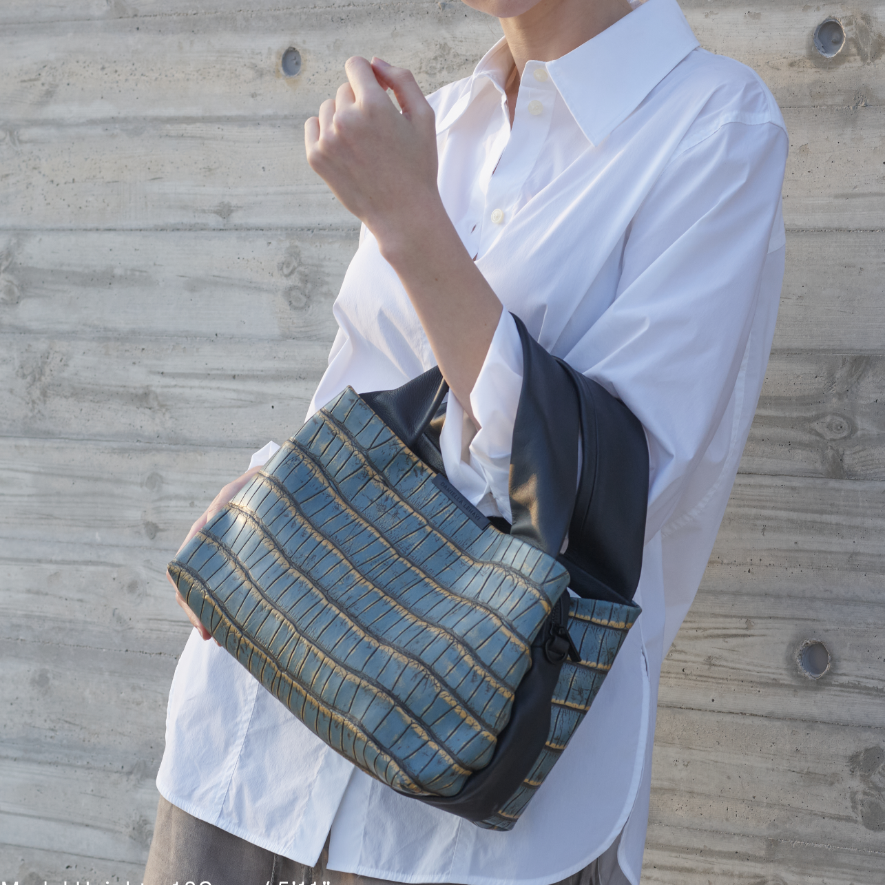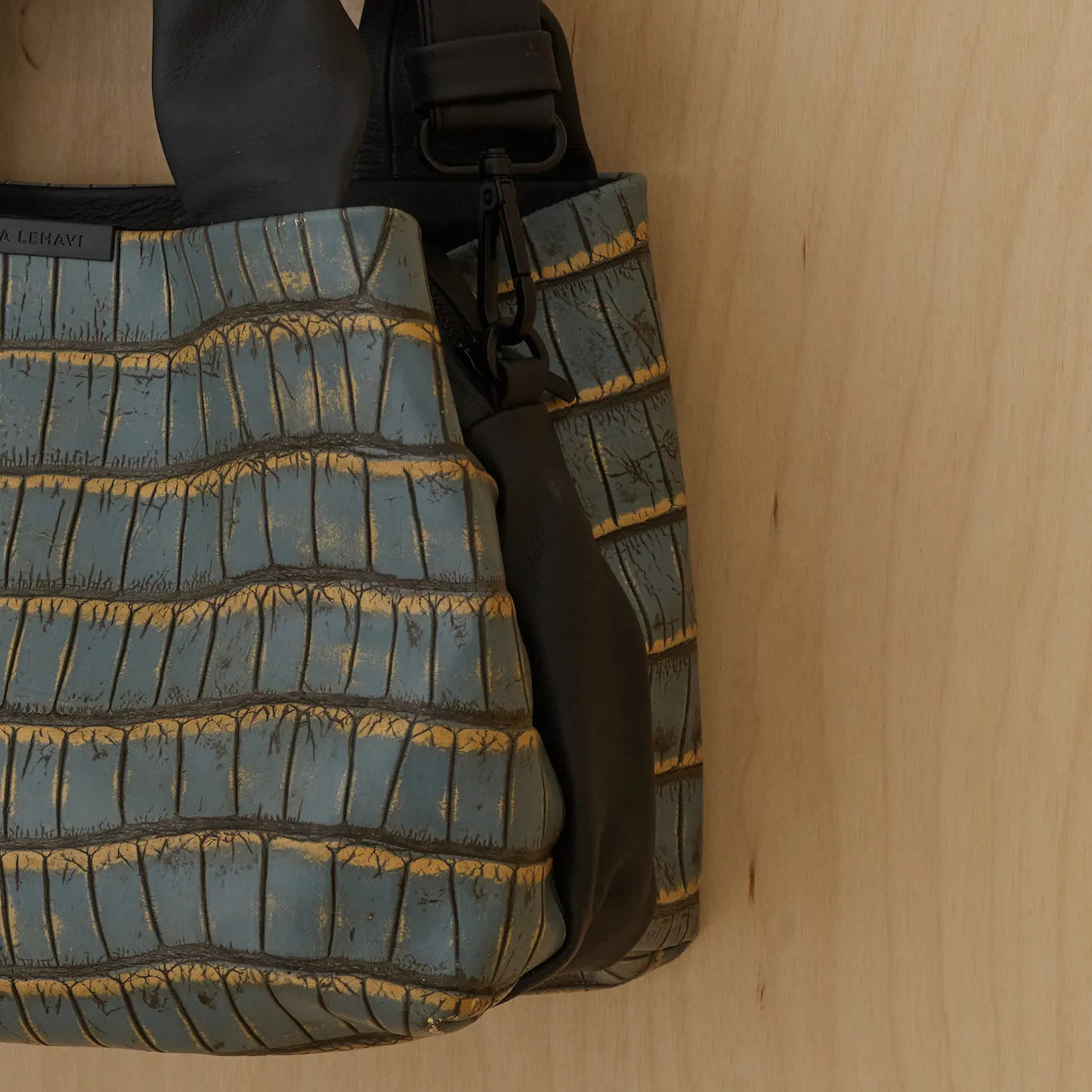 Daniella Lehavi specialized in handcrafted quality leather, an area studied for years. Eventually professionals joined her in a workshop set up in the studio. Daniella was open to the extraordinary possibilities inherent in natural leather. These quality leathers are manufactured in Italian factories and imported to Israel exclusively for the brand. The leathers are designed using original manual processes of dyeing, printing and embossing textures that were used along with impressive new developments and accurate coloring. These have become her trademark and distinctive signature of the brand.