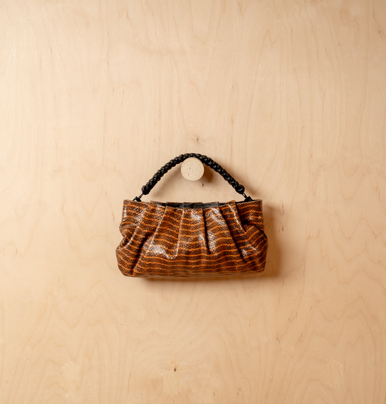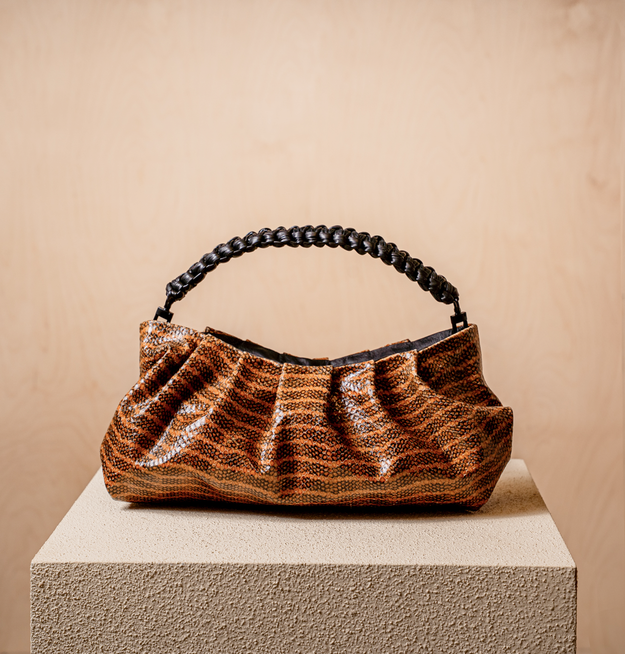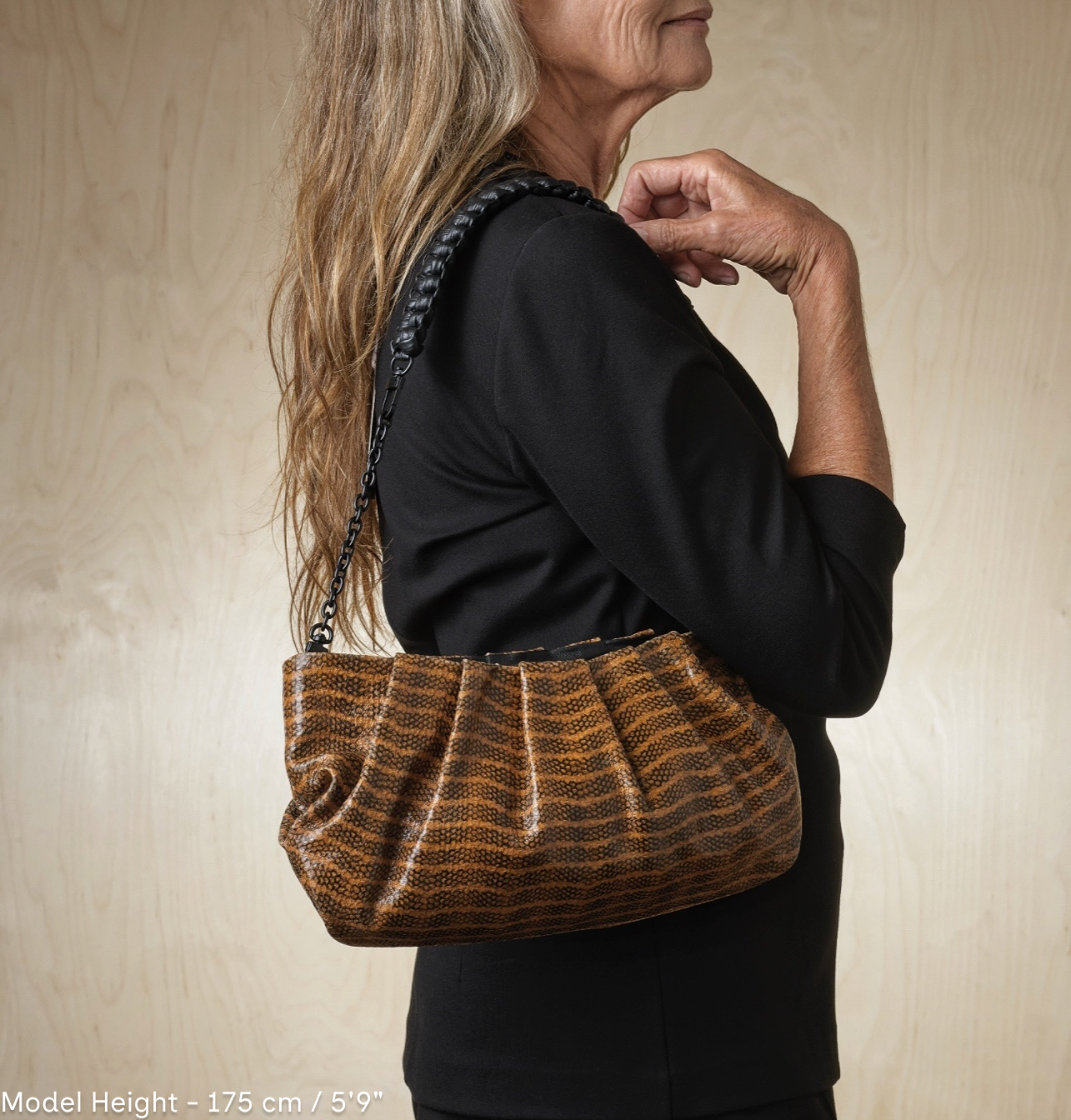 Bali Braided Landscape Bag הוא תיק במבנה מאורך ומדויק, עם קווים נקיים וקפלים רכים בעור שמעניקים לו תחושת תנועה ונפח. רצועת הכתף הקלועה מוסיפה אלמנט עם טקסטורה בעבודת יד, כמו תכשיט שמאיר את המראה כולו.