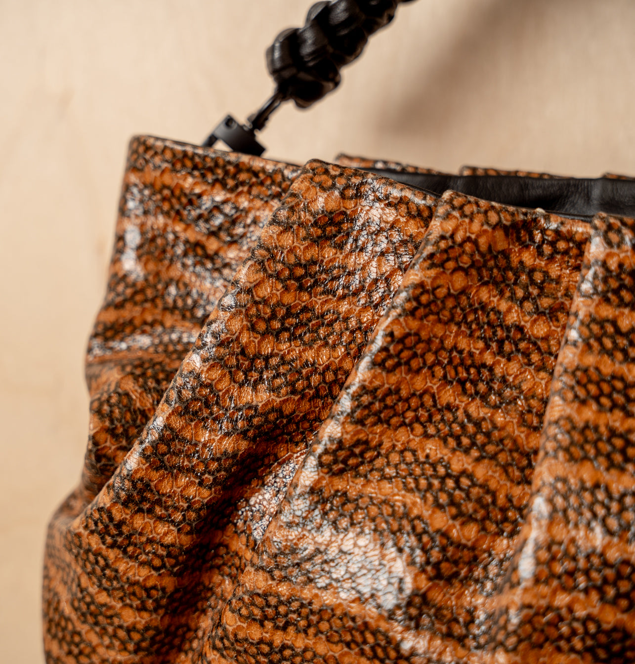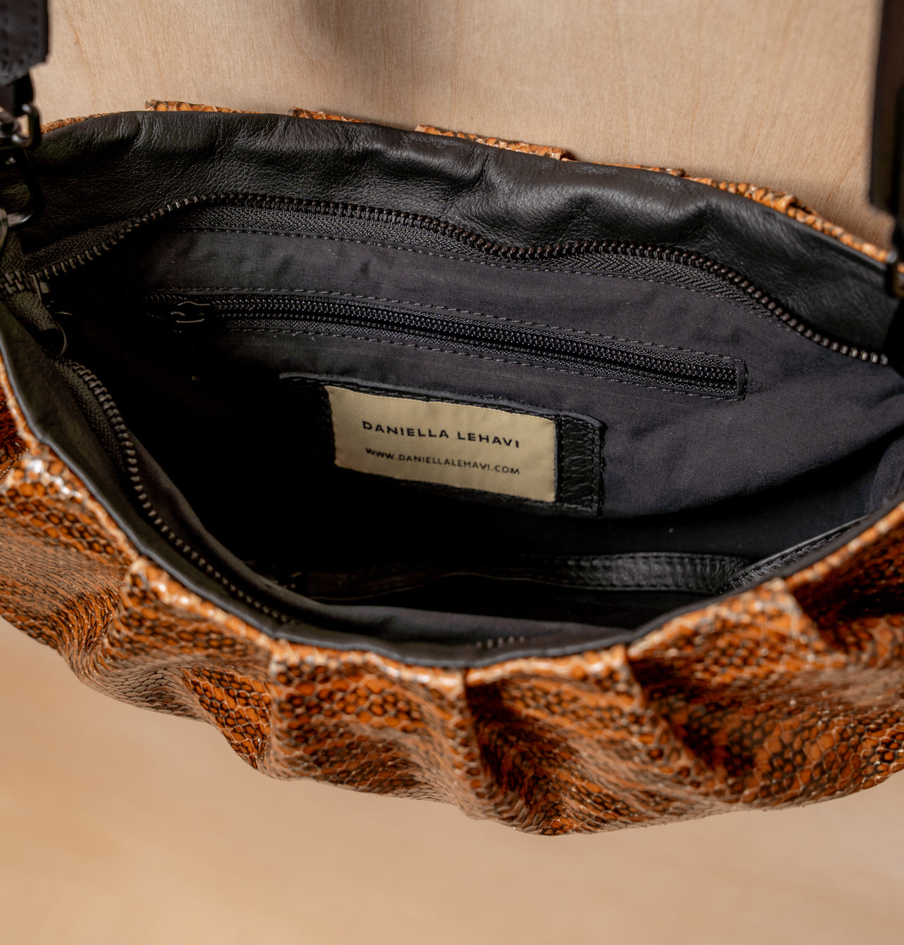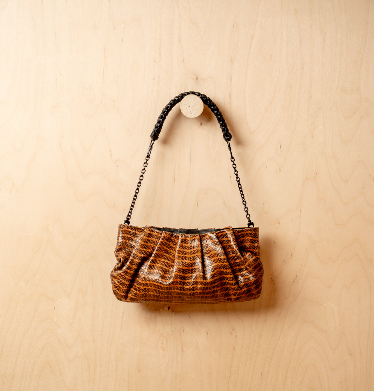 Bali Braided Landscape Bag הוא תיק במבנה מאורך ומדויק, עם קווים נקיים וקפלים רכים בעור שמעניקים לו תחושת תנועה ונפח. רצועת הכתף הקלועה מוסיפה אלמנט עם טקסטורה בעבודת יד, כמו תכשיט שמאיר את המראה כולו.