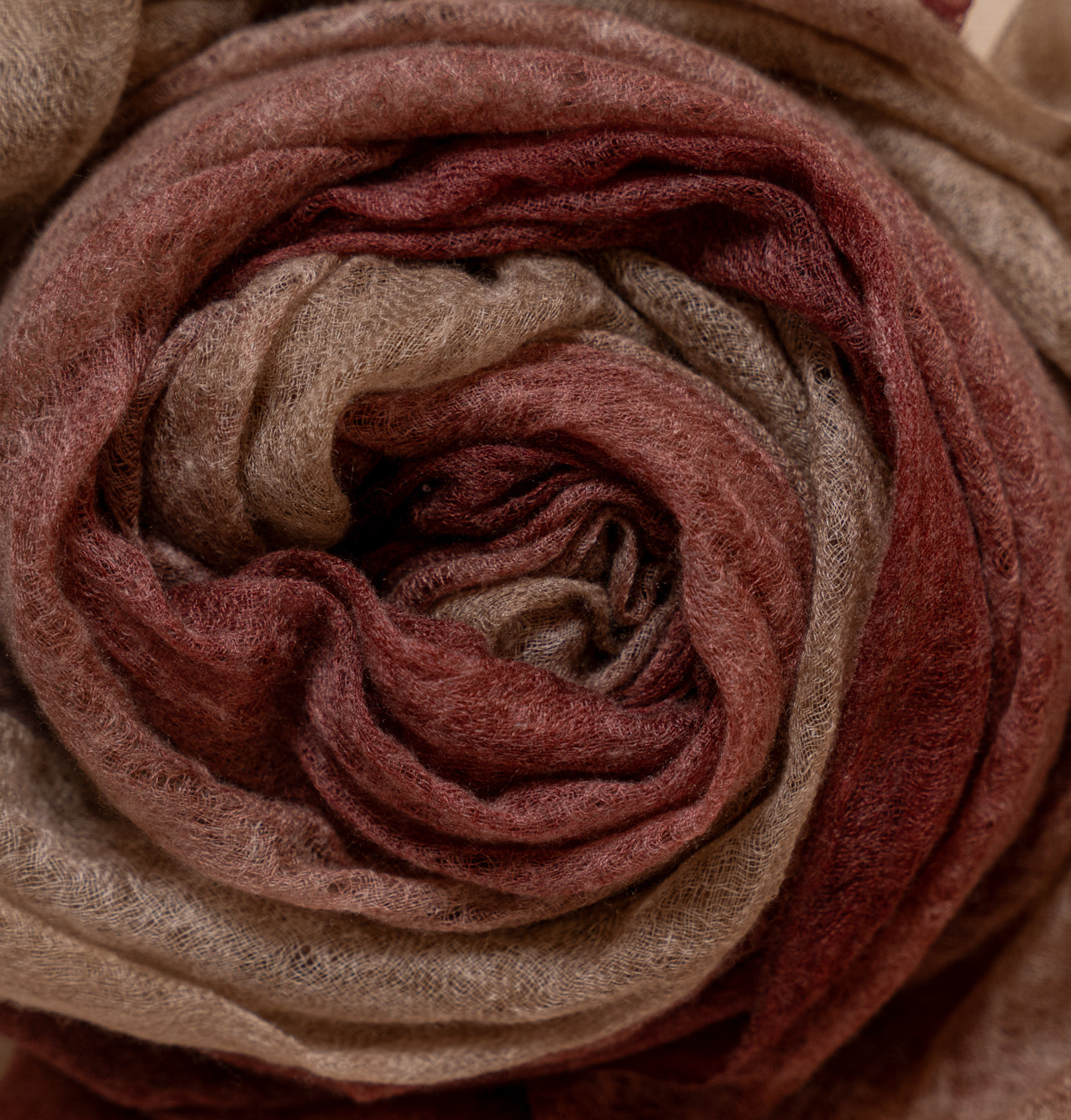 Macaron Ombre Cashmere Scarf של Oats & Rice הוא צעיף רך ואוורירי, עשוי 100% קשמיר אורגני דק במיוחד. האריגה העדינה יוצרת מעבר צבעים מדורג שמעניק תחושת עומק ותנועה טבעית סביב הכתפיים. זהו פריט רב־שימושי – נוח לנסיעות, מתאים לעונות השונות, ומוסיף בקלות שכבה אלגנטית ונקייה לכל מראה.